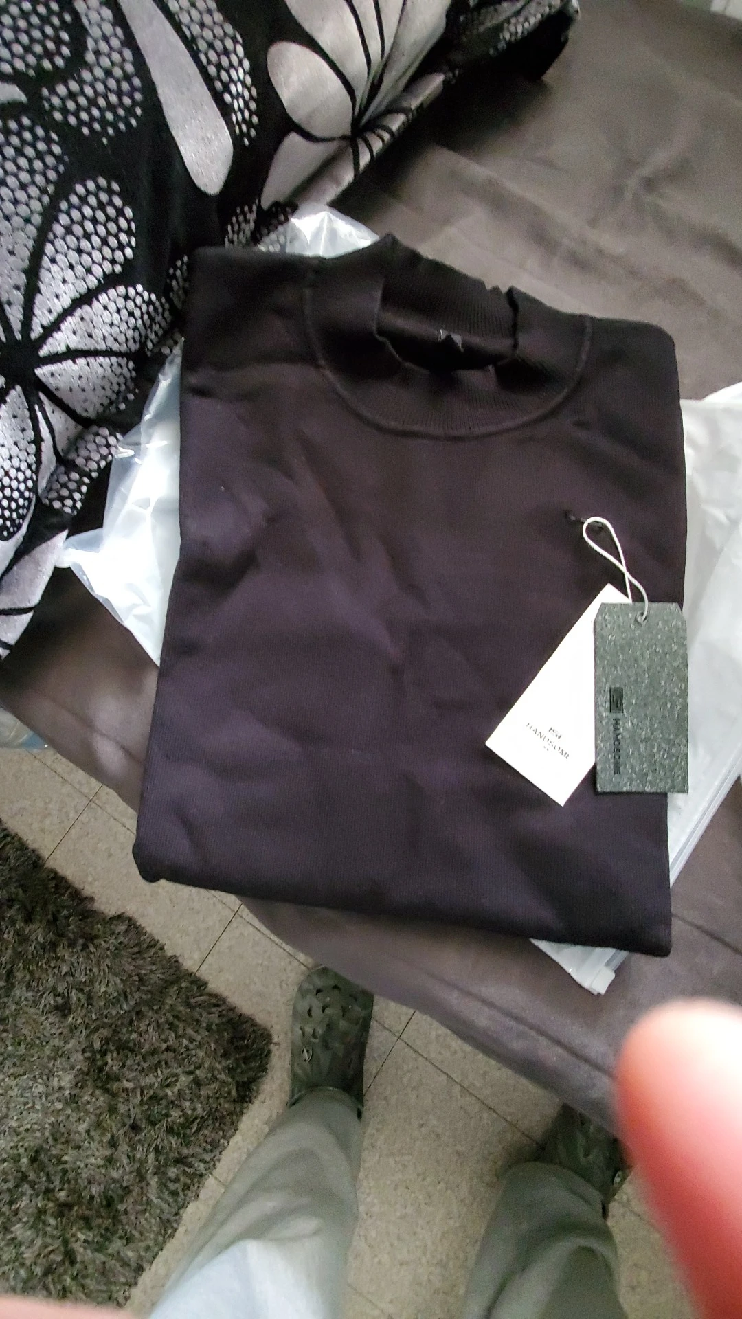 Это очень красивый мягкий свитер из хорошего материала с ложным воротником. Это моя вторая покупка и может купить другую. Размер также соответствует указанному. 5 ---