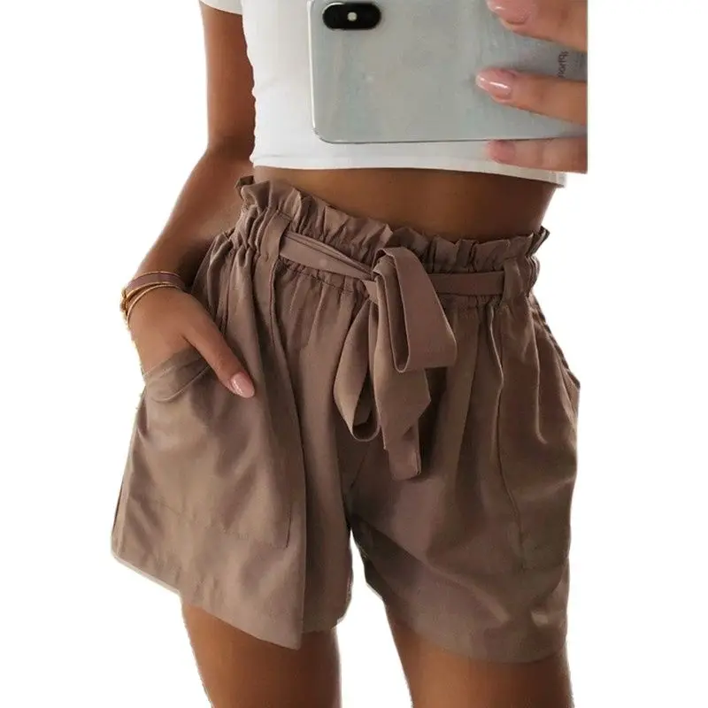 Шорты женские повседневные с поясом, модные пляжные однотонные свободные, со средней талией, хлопковые, лето 2019