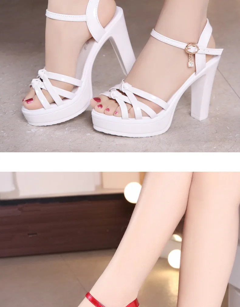 Сандалии женские на платформе и блочном каблуке, элегантные кожаные босоножки на высоком каблуке, обувь для свадьбы, офиса, большие размеры 32-43, лето 2022