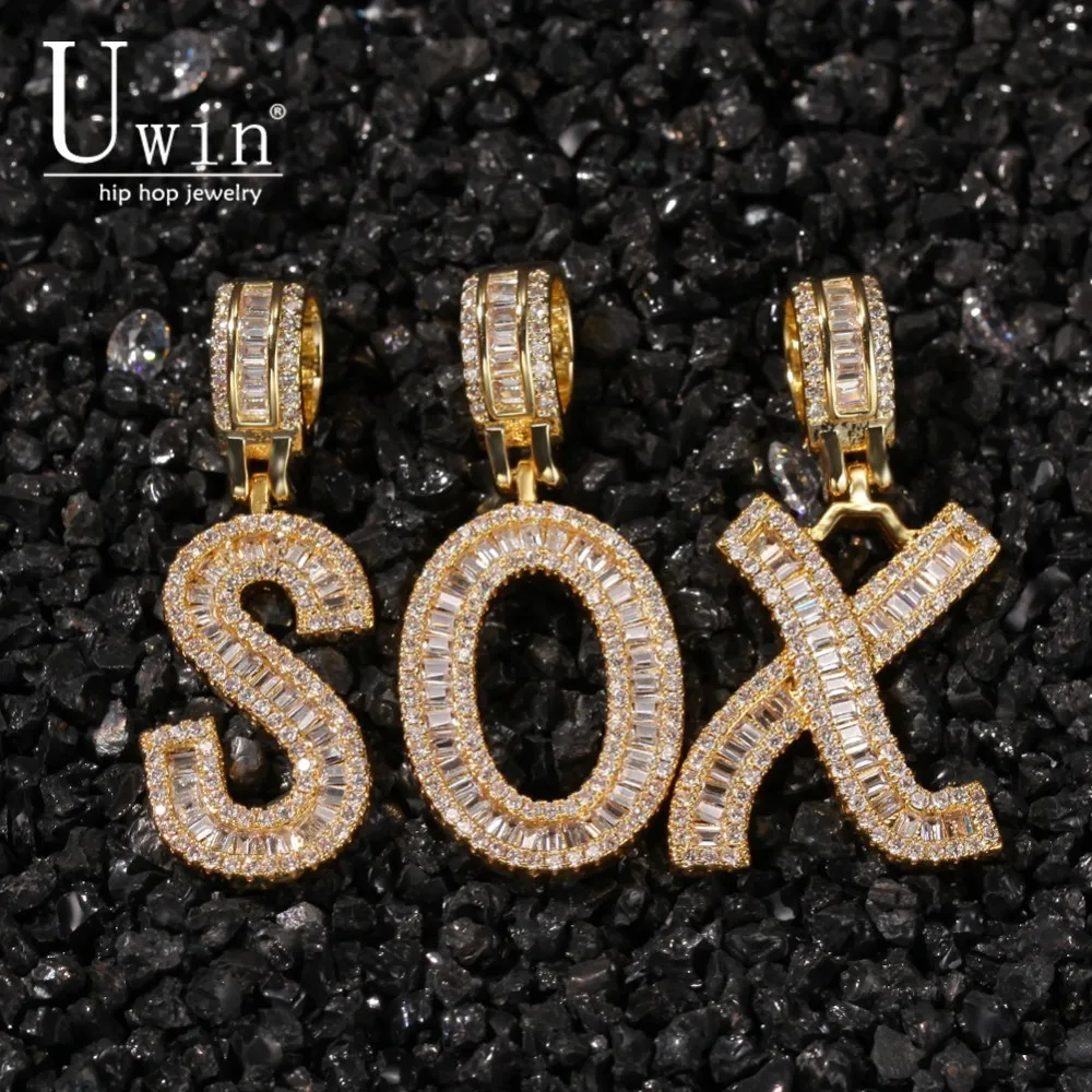 Uwin багет с буквенным кубическим цирконием, ожерелье с кулоном и кулоном с именем на заказ, ювелирные изделия в подарок