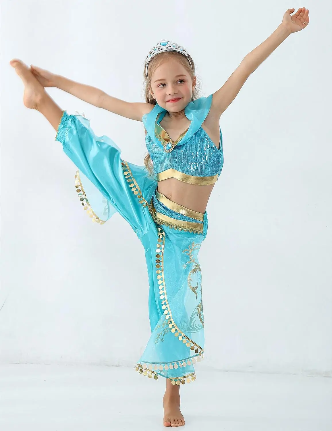 Название отдела:Платье Цвета жасмин для девочек, комплект из 2 предметов, дети, блестками, цветочный принт, Арабская принцесса, костюм, дети, Хэллоуин, косплей, фантазии