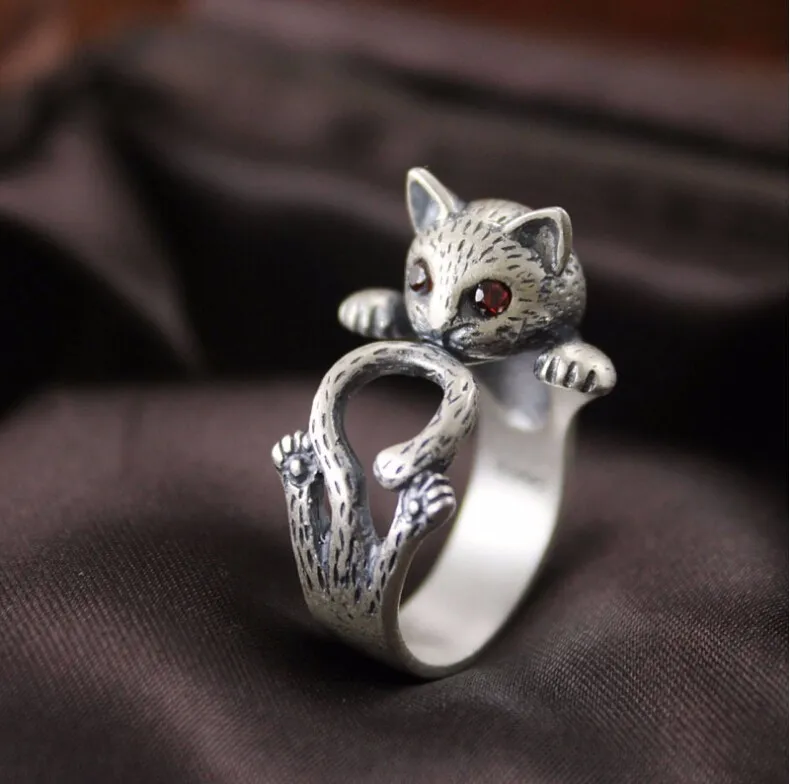 Новое поступление Высокое качество Ретро стиль милый кот тайского серебра 925 пробы женские регулируемые размеры кольца ювелирные изделия подарок