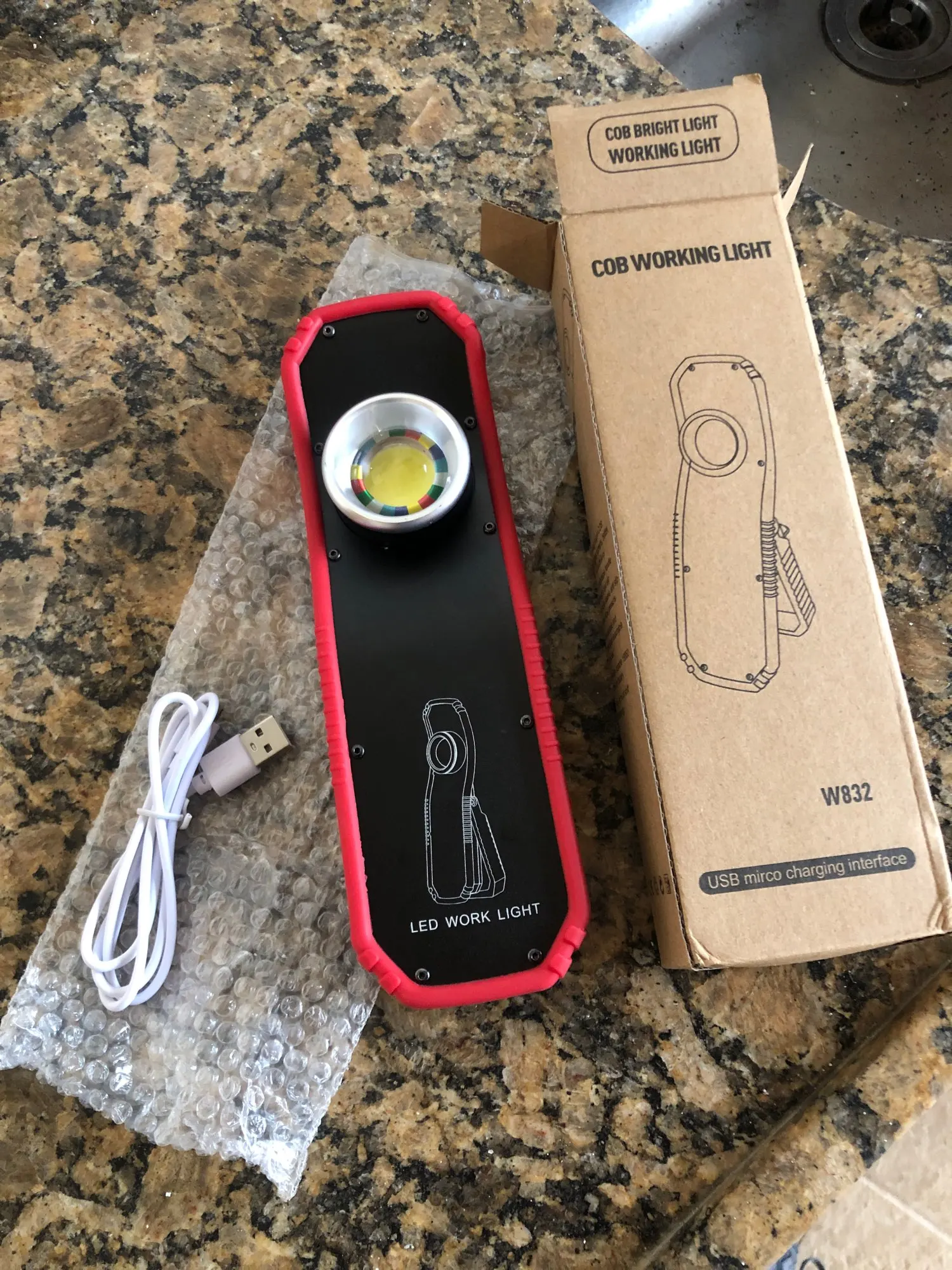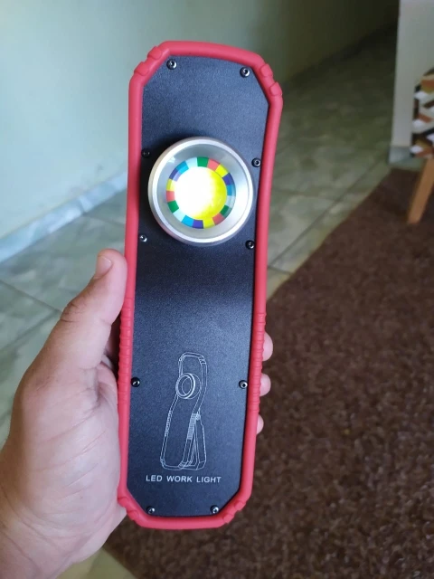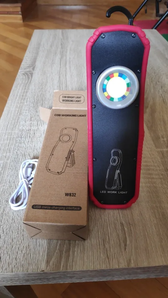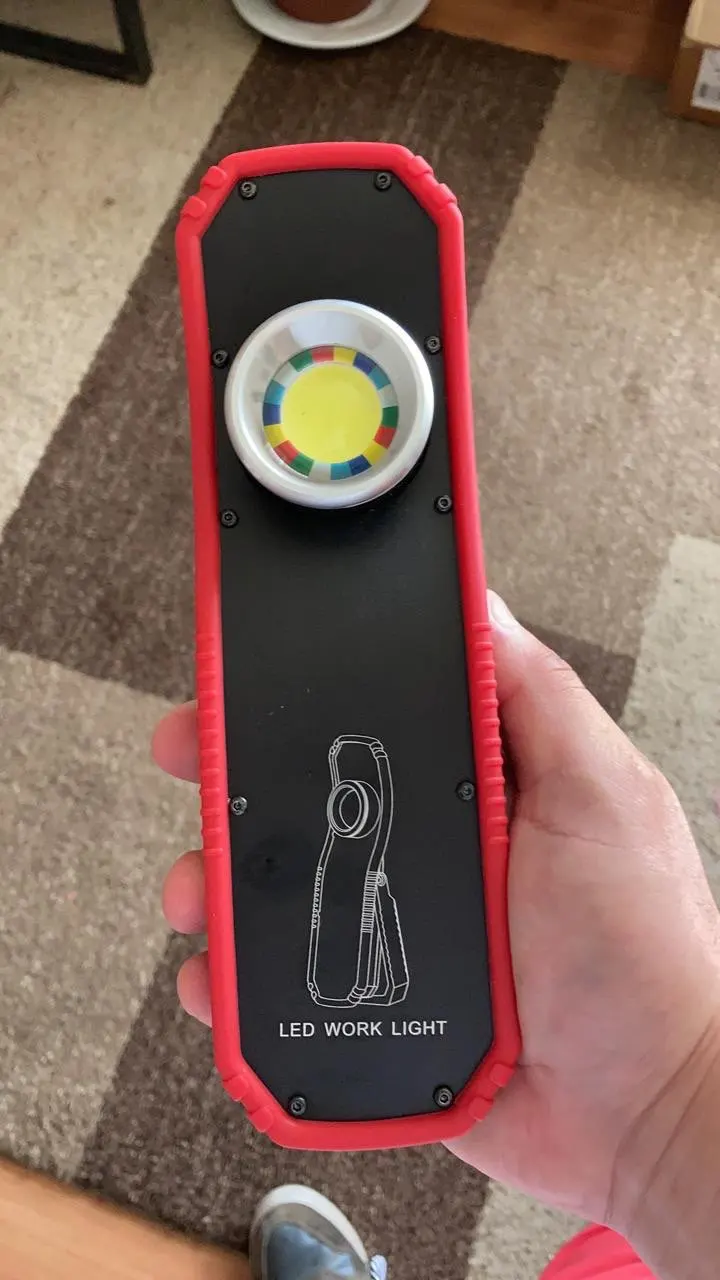 Классный фонарь для автомобилиста. Три режима освещения: точкой, пучком и красочный мигающий. Есть подвес, подставка с магнитом, под машиной выручит точно. Товар и продавца рекомендую.