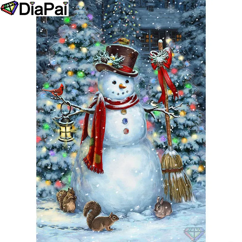 DIAPAI Алмазная картина 5D DIY 100% полностью квадратнаякруглая дрель "Снеговик белка" Алмазная вышивка крестиком 3D декор A25016