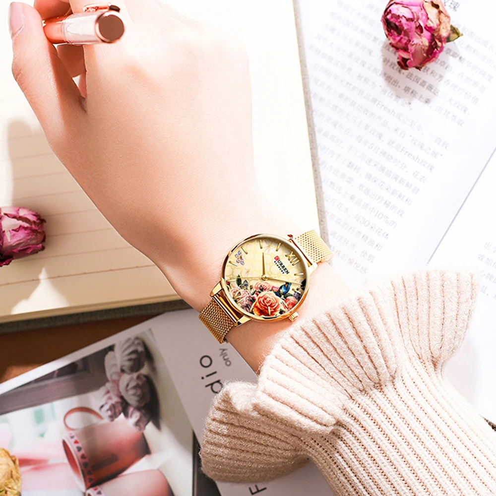 CURREN новые женские часы с цветочным орнаментом женские наручные ч...