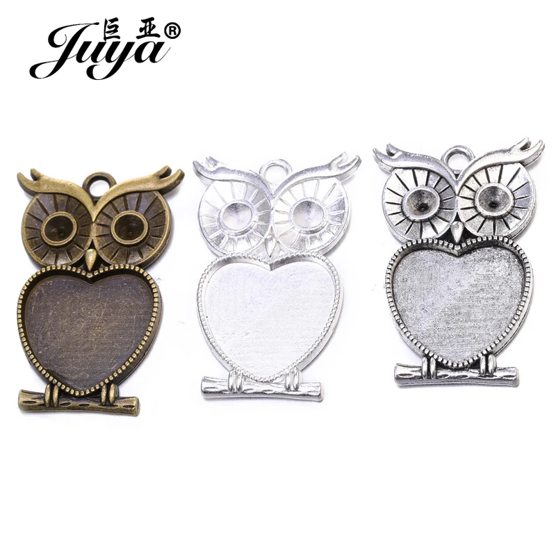 5 шт.партия 25 мм в форме сердца Сова Кабошон, гнездовая оправа Пустые лотки для подвесного ожерелья DIY ювелирных изделий Аксессуары