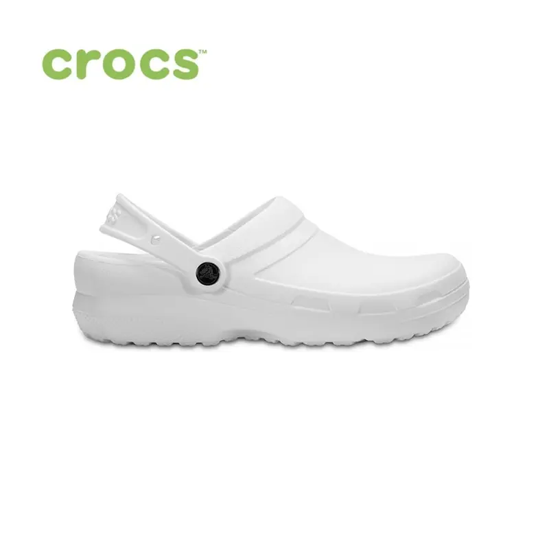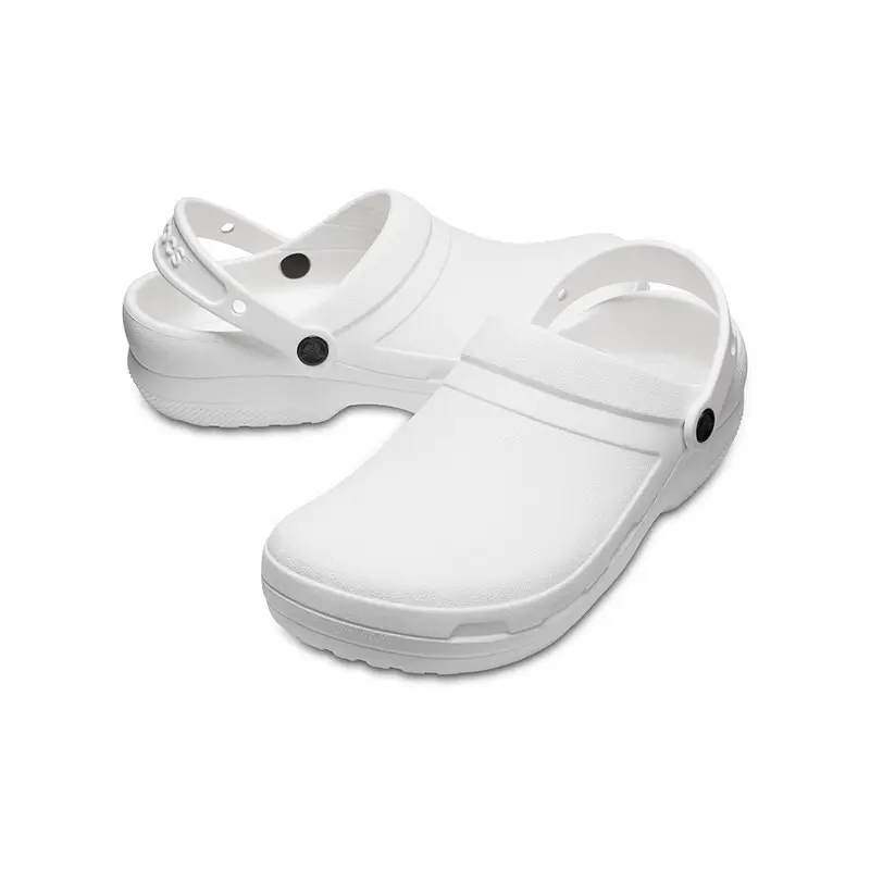 Отвечает ли ваша обувь требованиям вашей профессии? Эти сабо из нашей коллекции Crocs At Wrok™ Collection работают над вашим комфортом сверхурочно, а теперь и с вентиляционными отверстиями в районе носка для повышенной циркуляции воздуха и быстрого избавления от воды и камешков. Модель имеет более толстые покрытия пятки и плюсневой зоны, усиленную поддержку ступни и массажные шишечки на стельке из пеноматериала Croslite™ для лучшей микроциркуляции крови при каждом шаге.