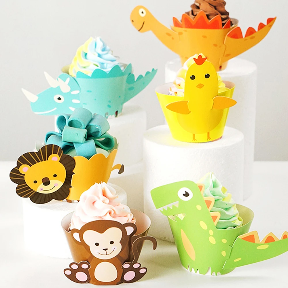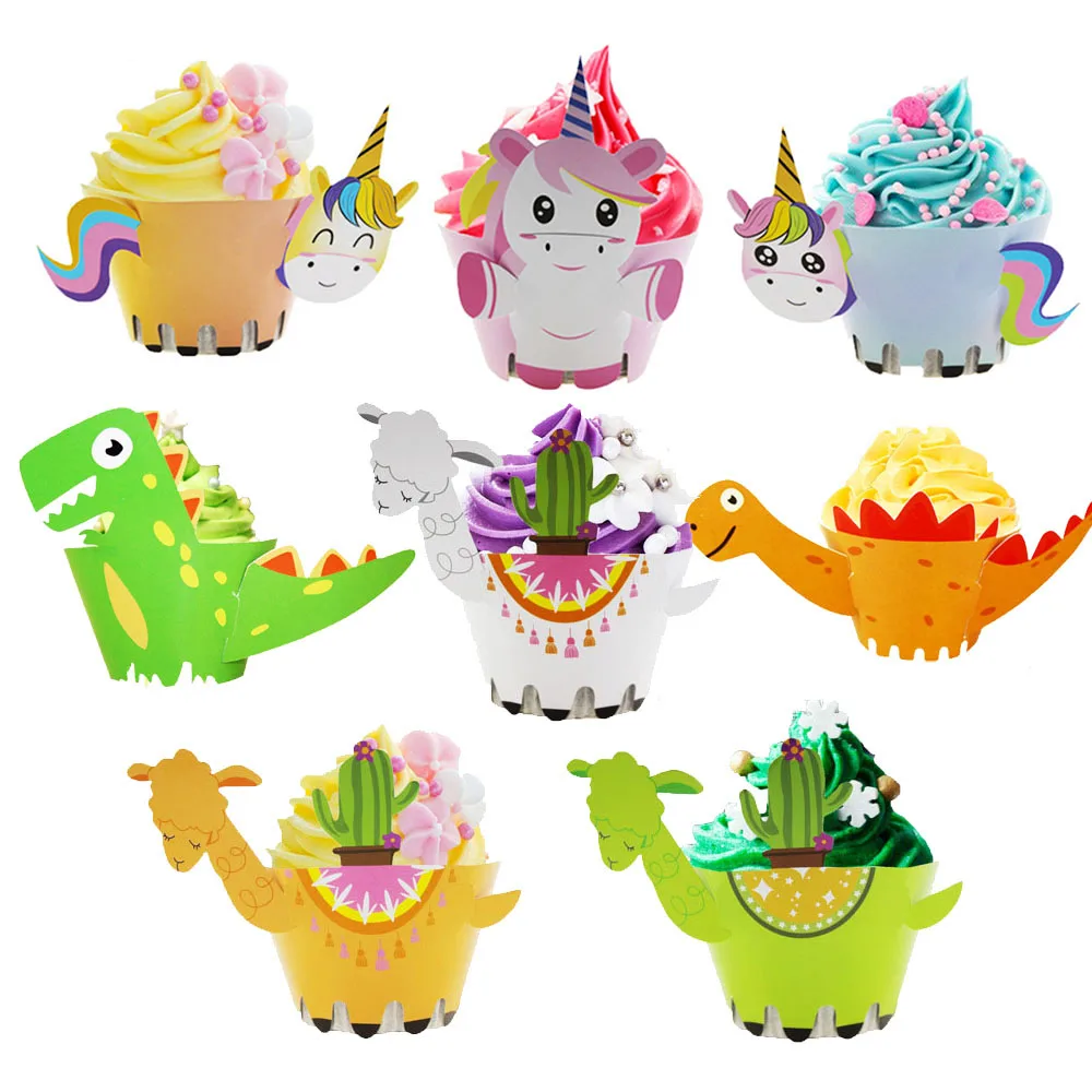 12 компл. Единорог Альпака динозавр зоопарк животное, кекс обертка детский душ День рождения украшения