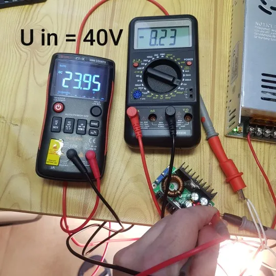 Хороший преобразователь, правда есть особенность - максимальный ток 8А при выходном напряжении 24 В выдает только при входном напряжении 39-40 В. Если входное напряжение меньше, например 33 В, то выходной ток снижается до 7 А и выходное напряжение снижается до 18 В соответственно. Если ток нагрузки до 5 А, то все работает корректно.