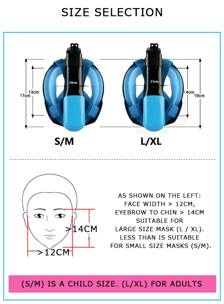 Маска для подводного плавания для взрослых, Полнолицевая, противоту...