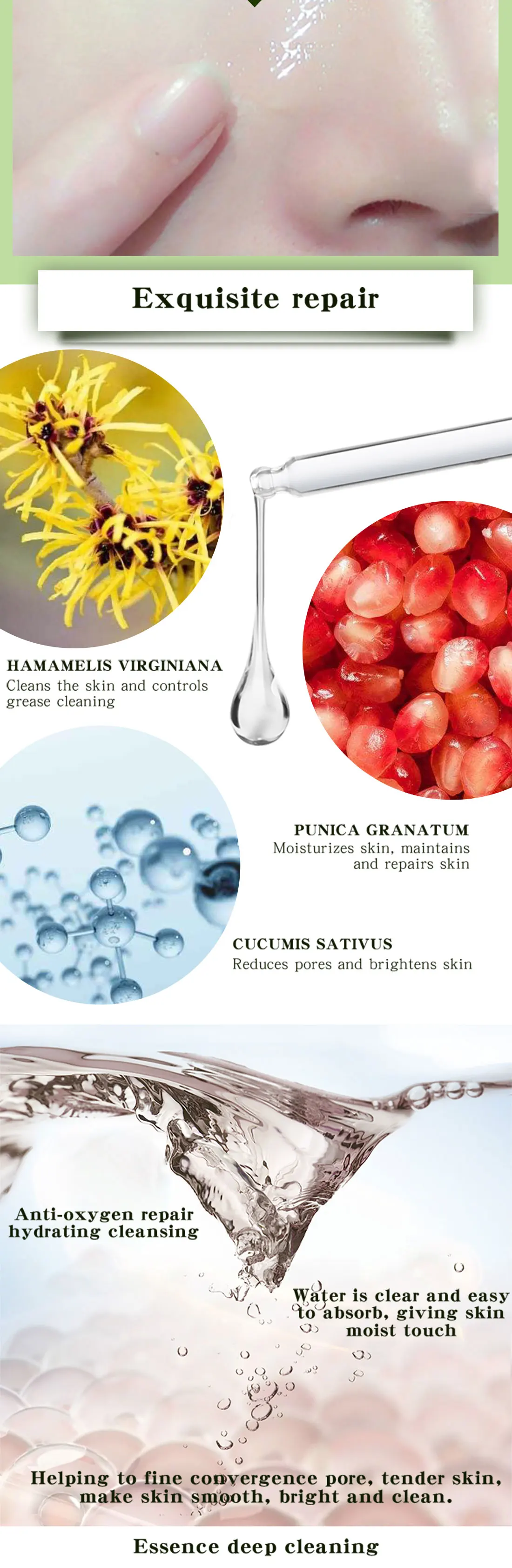 Содержит экстракт гранатового растения, вода чистая и легко впитывается, придает коже влажное прикосновение, Гранатовое питательное средство освежает, помогает тонкой конвергенции пор, нежной коже, делает кожу гладкой, яркой и чистой