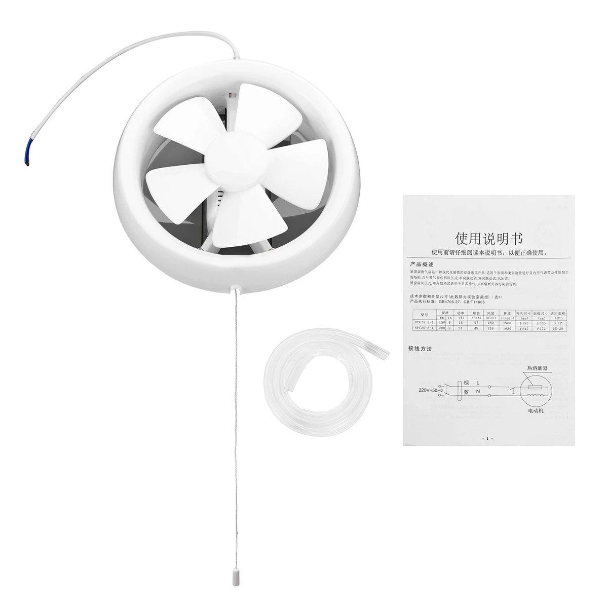 Настенный вытяжной вентилятор отлично подходит для извлечения влажного воздуха или пара для домашней ванной комнаты. Он отличается высокой эффективностью работы, низким уровнем шума и долгим сроком службы. С современным и простым дизайном, весь корпус и лезвия прочные и прочные.Технические характеристики:Цвет: белыйМатериал: пластикНоминальное напряжение: 220 В/50 Гц<20 см Размер>Диаметр изделия: 206 мм/8,1"Мощность: 15 ВтДиаметр монтажного отверстия: 185 мм/7,3"Объем воздуха: 180 м?/чСкорость: 1980, оборот в минуту (r/min)Шум: 47 дБ (A)<27 см Размер>Диаметр изделия: 272 мм/10,7"Мощность: 24 ВтДиаметр монтажного отверстия: 247 мм/9,7"Объем воздуха: 336 м?/чСкорость: 1920 об/минШум: 48 дБ (A)Особенности и преимущества:1. Этот вытяжной вентилятор изготовлен из пластика, не легко стареть, более прочный и прочный, обеспечивает длительный срок службы.2. Высокая эффективность вентиляции и низкий уровень шума при работе.3. Премиум-двигатель мощный, износостойкий и энергосберегающий.4. Вытяните веревку, чтобы контролировать вытяжной вентилятор, очень удобно использовать.5. Оснащен шлангами для установки, он может эффективно предотвратить просачивание воды и уменьшить вибрацию.6. Настенный, подходит для домашней ванной комнаты, туалета для вентиляции выхлопного воздуха, влажного воздуха, пара и дыма.Посылка:1x вытяжной вентилятор1x Мягкий Шланг1x Руководство пользователяПримечание:1. Допускается погрешность в 1-3 мм из-за ручного измерения. Пожалуйста, убедитесь, что вы не возражаете, прежде чем сделать ставку.2. Цвет может отличаться от цвета на дисплее, пожалуйста, поймите.