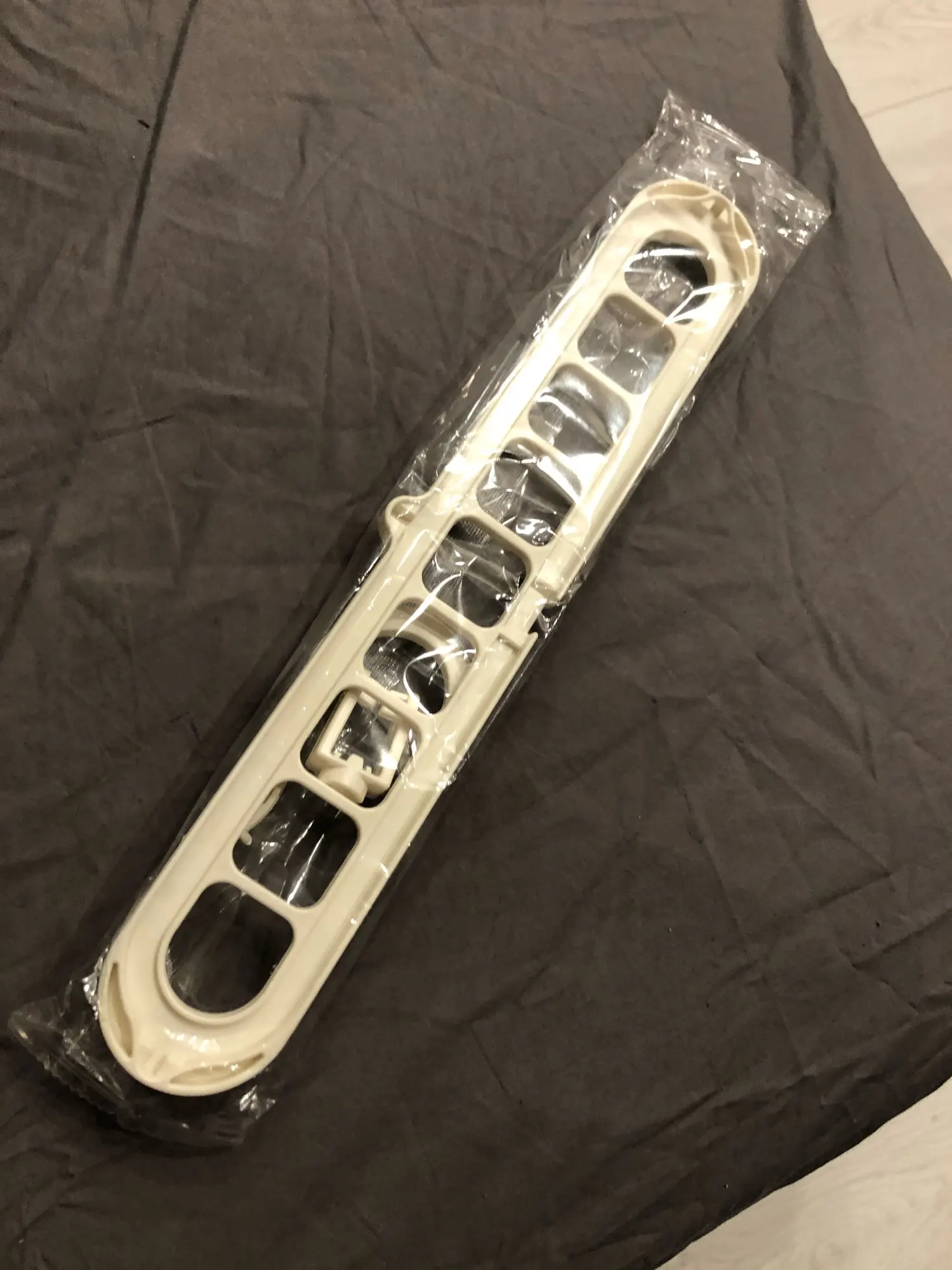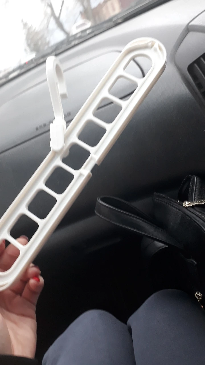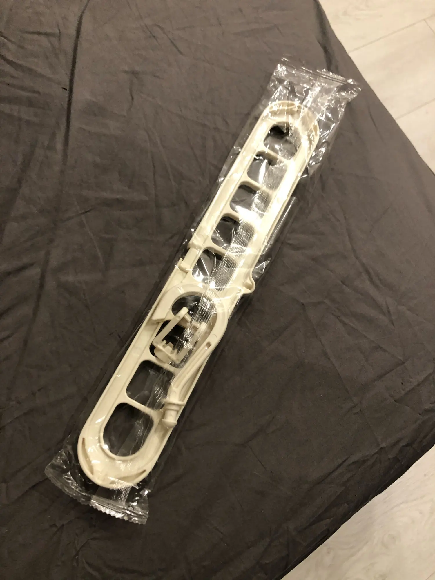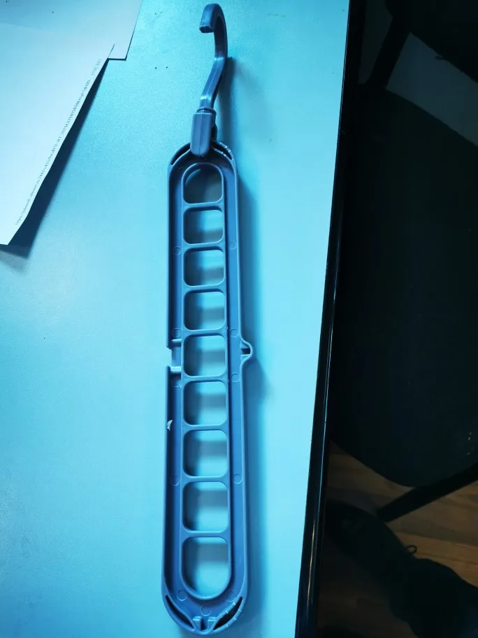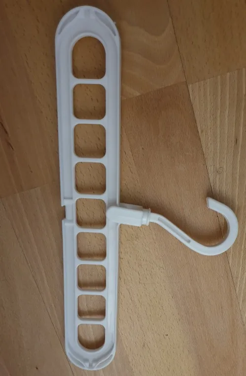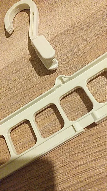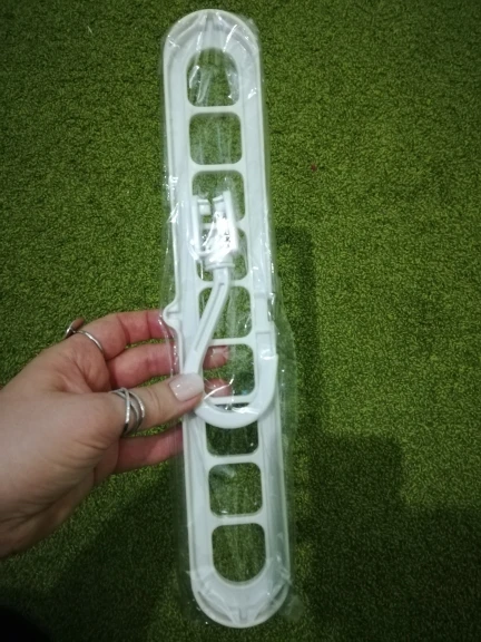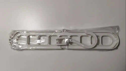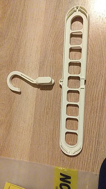 С виду хорошая вешалка, сделана из достаточно прочного пластика. Единственное место, которое вызвало сомнение - это соединение самого крючка вешалки с основной, секционной частью. Посмотрим как будет в деле.