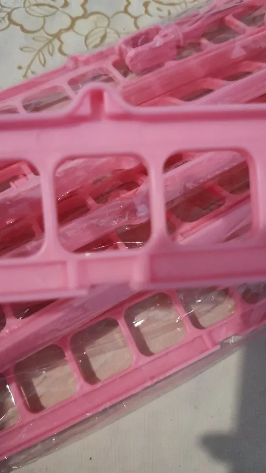 Доставка около 2х недель. Они довольно толстые, не каждую вешалку повесишь, ещё из-за самой вешалки (крючка), что она длинная, получается, что нижние вещи почти до пола. В общем смешанные чувства, без восторга. Лайфак с ключами от ж/б банок полезнее....