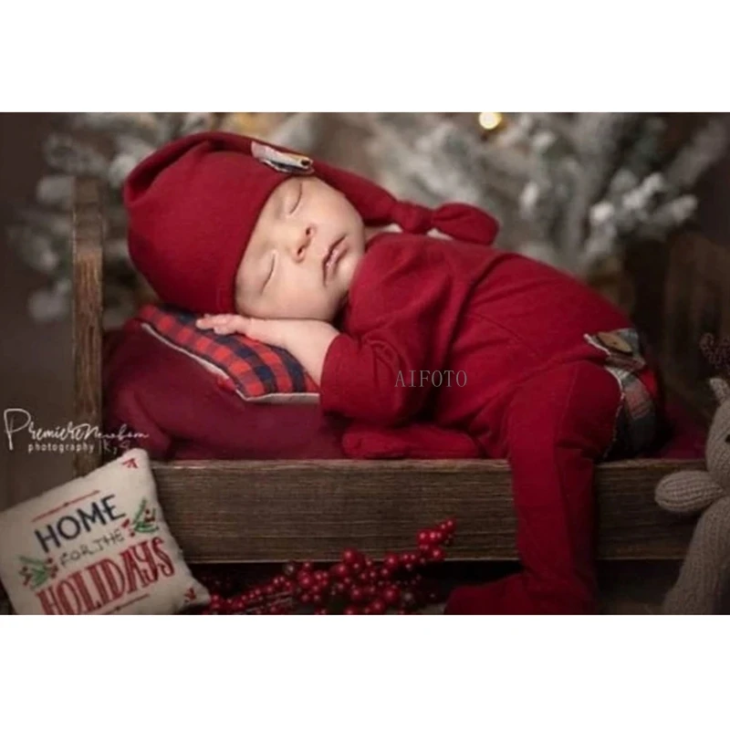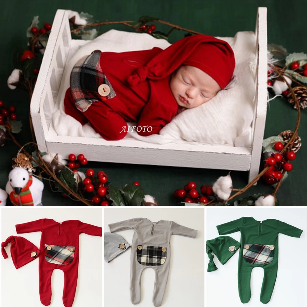 Детские комбинезоны для рождественской фотосъемки, реквизит для фотосъемки новорожденных, комплект одежды + шапка, Детские эластичные мягкие дешевые наряды для младенцев