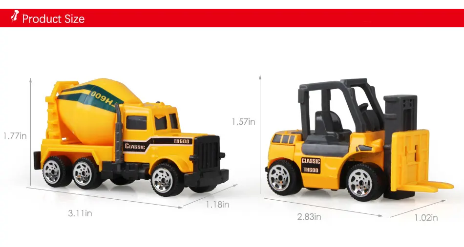 Features 1Mini Diecast Car Model Engineering Vehicle