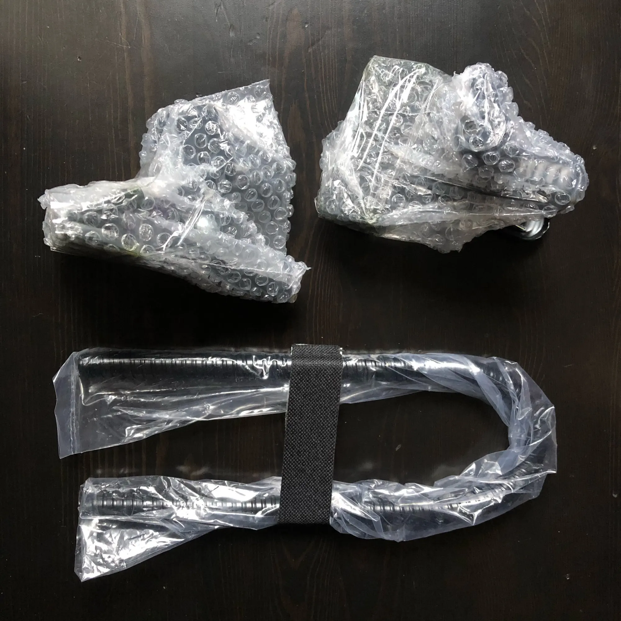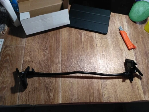 Изделие дошло за одну неделю до Екатеринбурга. Картонная упаковка. Зажимы снимаются, они прикручиваются винтами к гибкой части.