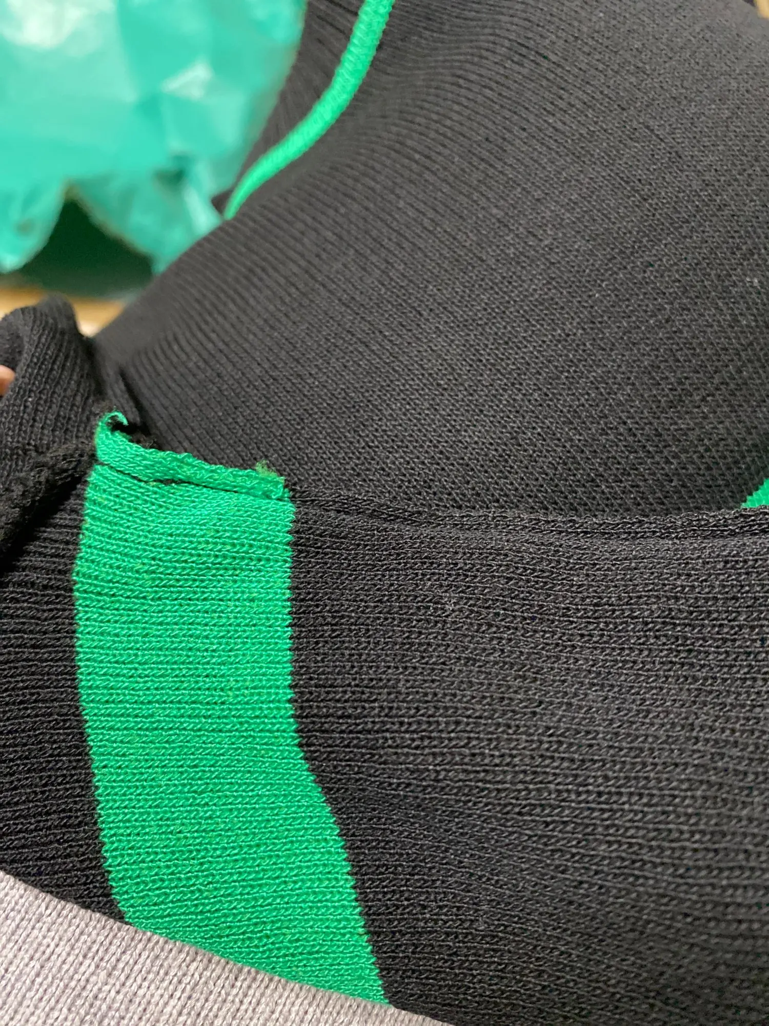Кофточка из плотного трикотажа, зеленый цвет очень яркий. За такие деньги очень качественный товар, так как нитки не торчали, при стирке не линяет, запаха постороннего не было. Доставили товар за 2 недели до Красноярского края.