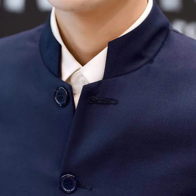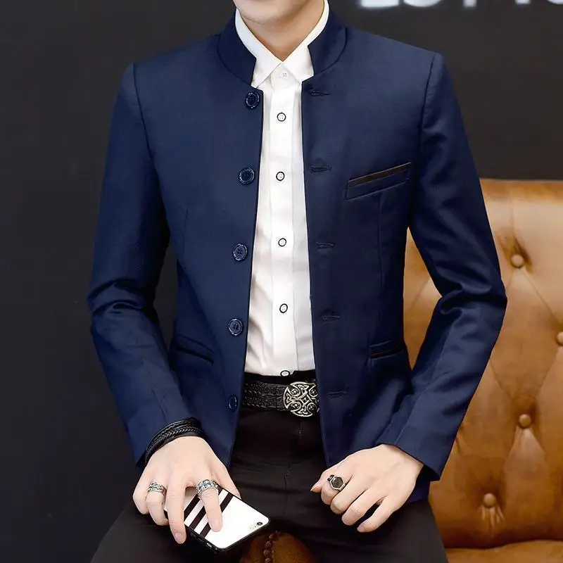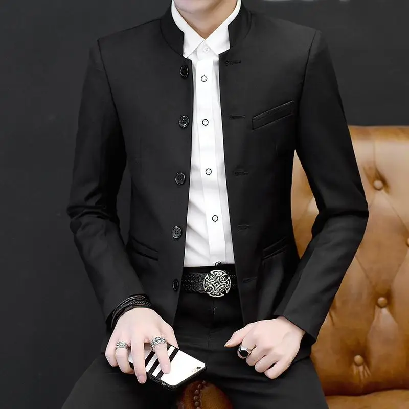 Пиджак мужской в китайском стиле, приталенный модный блейзер с воротником-стойкой и длинными рукавами, однобортная туника, 4XL