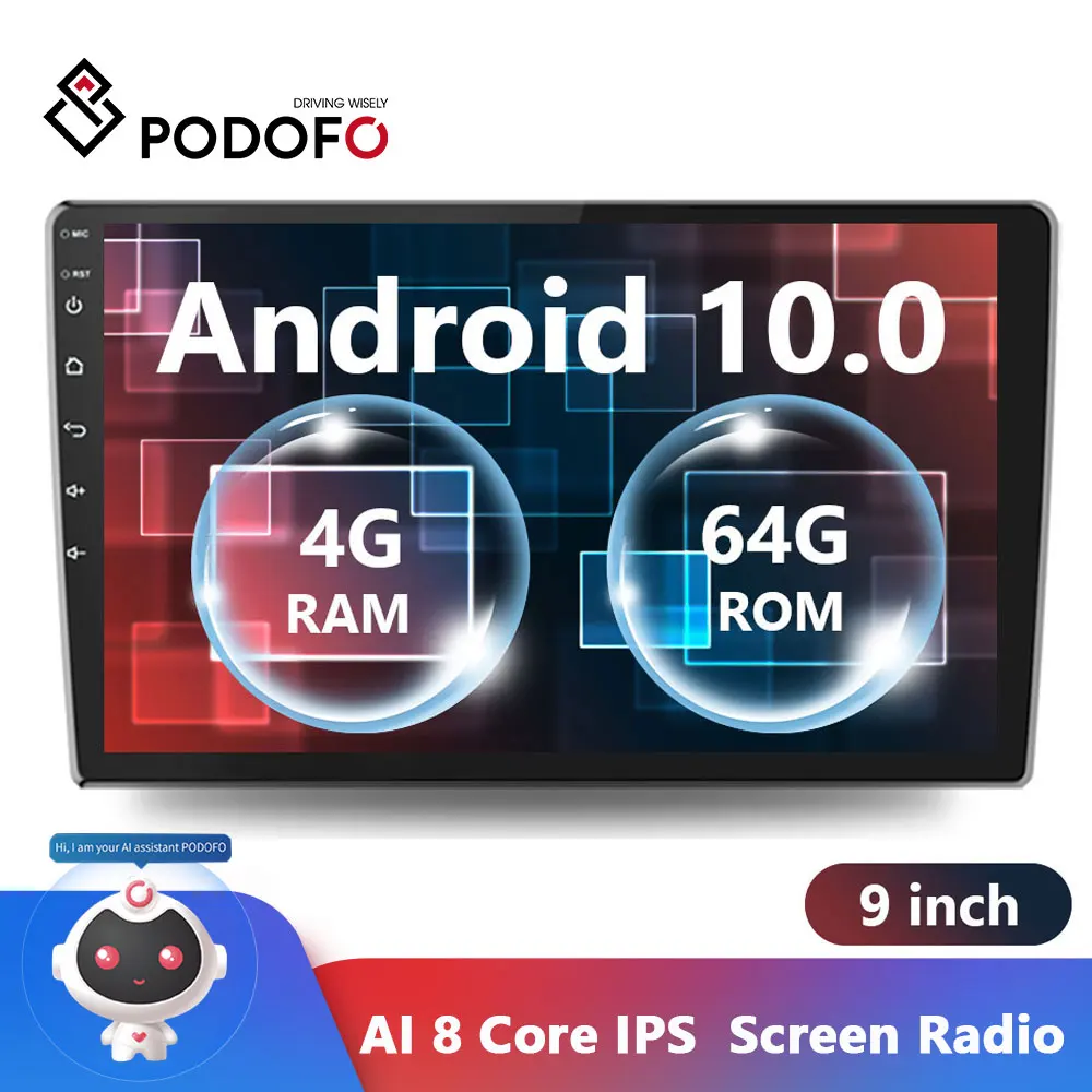 Автомобильный мультимедийный плеер Podofo, проигрыватель на Android, с 9 "экраном HD 2.5D, 8 ГБ ОЗУ, 128 Гб ПЗУ, с закаленным стеклом, MP5, Wi-Fi, FM, AM, типоразмер 2DIN