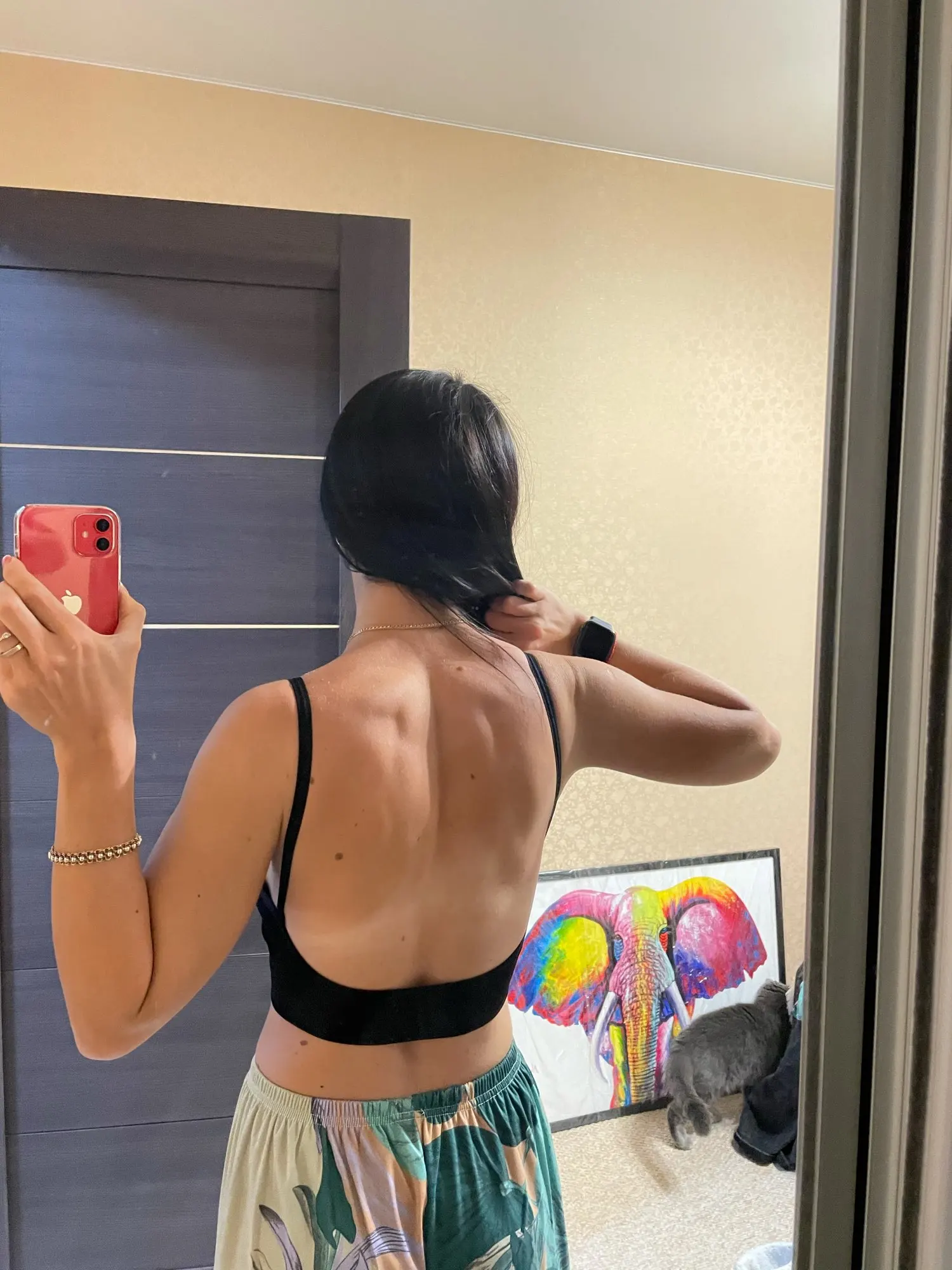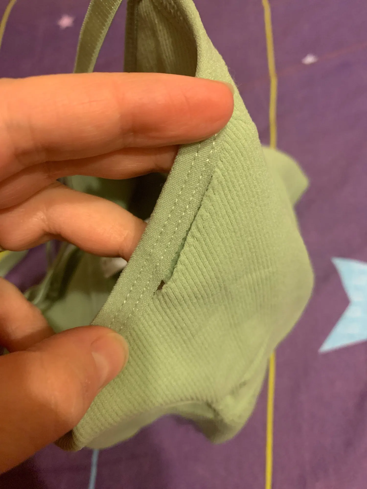 Топ очень приятный к телу. Швы ровные, нитки не торчат, пошит ровно. Никакого запаха! Хорошо держит маленькую грудь, вкладыши можно вынуть! Очень понравился! До Спб шёл месяц.