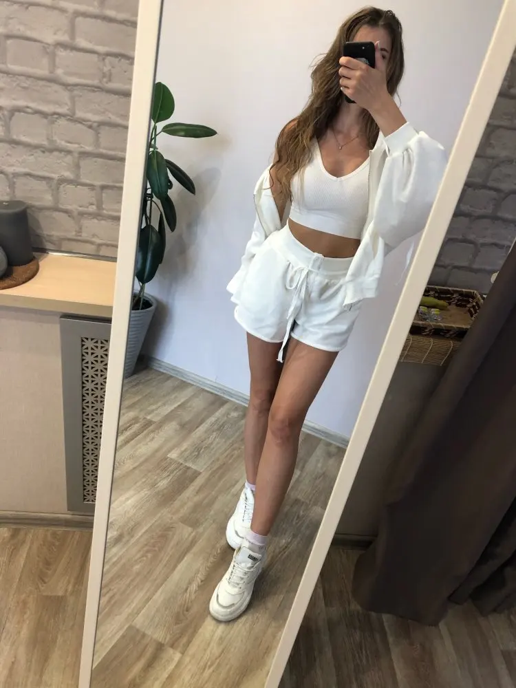 Очень крутой кроп топ . Смотрится стильно . И не омылртно в нем.