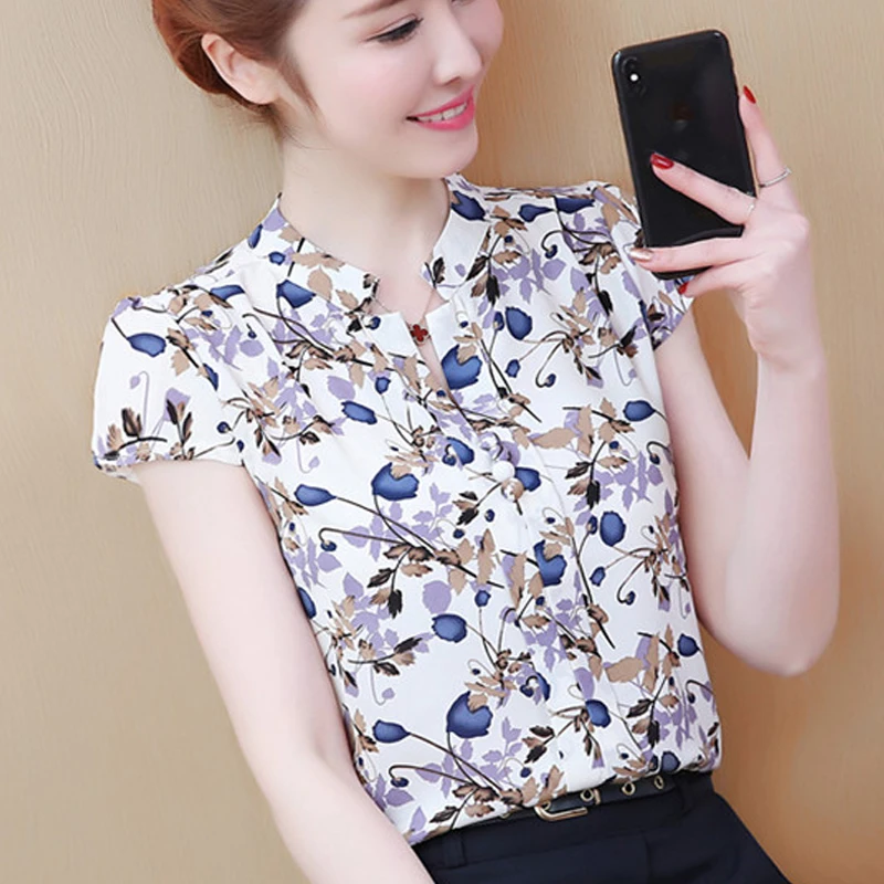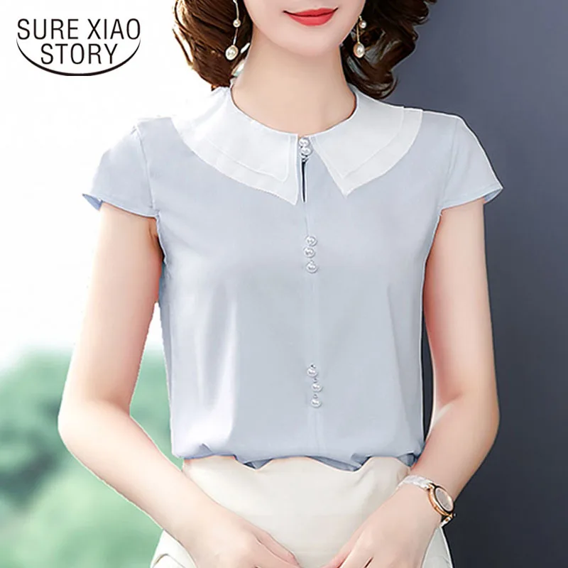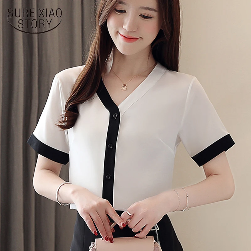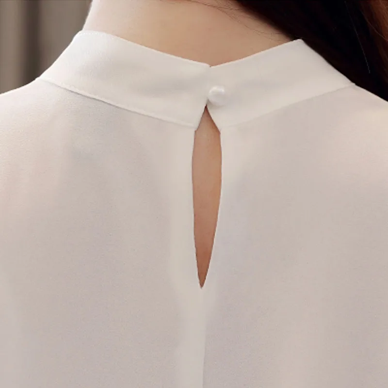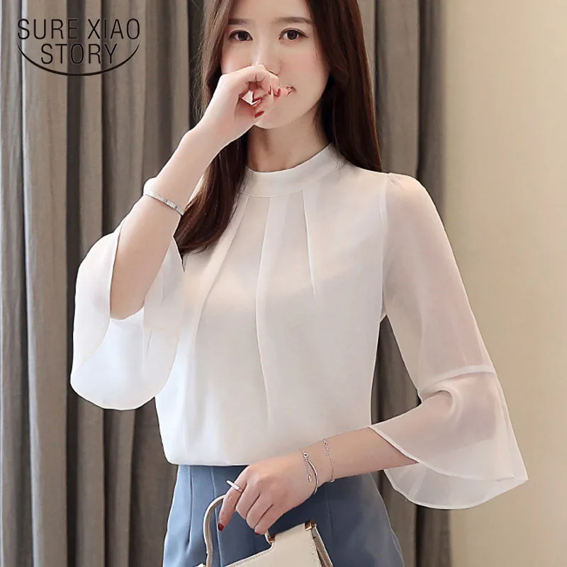 Женская шифоновая блузка с рукавами-фонариками, повседневная однотонная свободная офисная рубашка белого цвета с полурукавами, модель 4944 50 в Корейском стиле на лето
