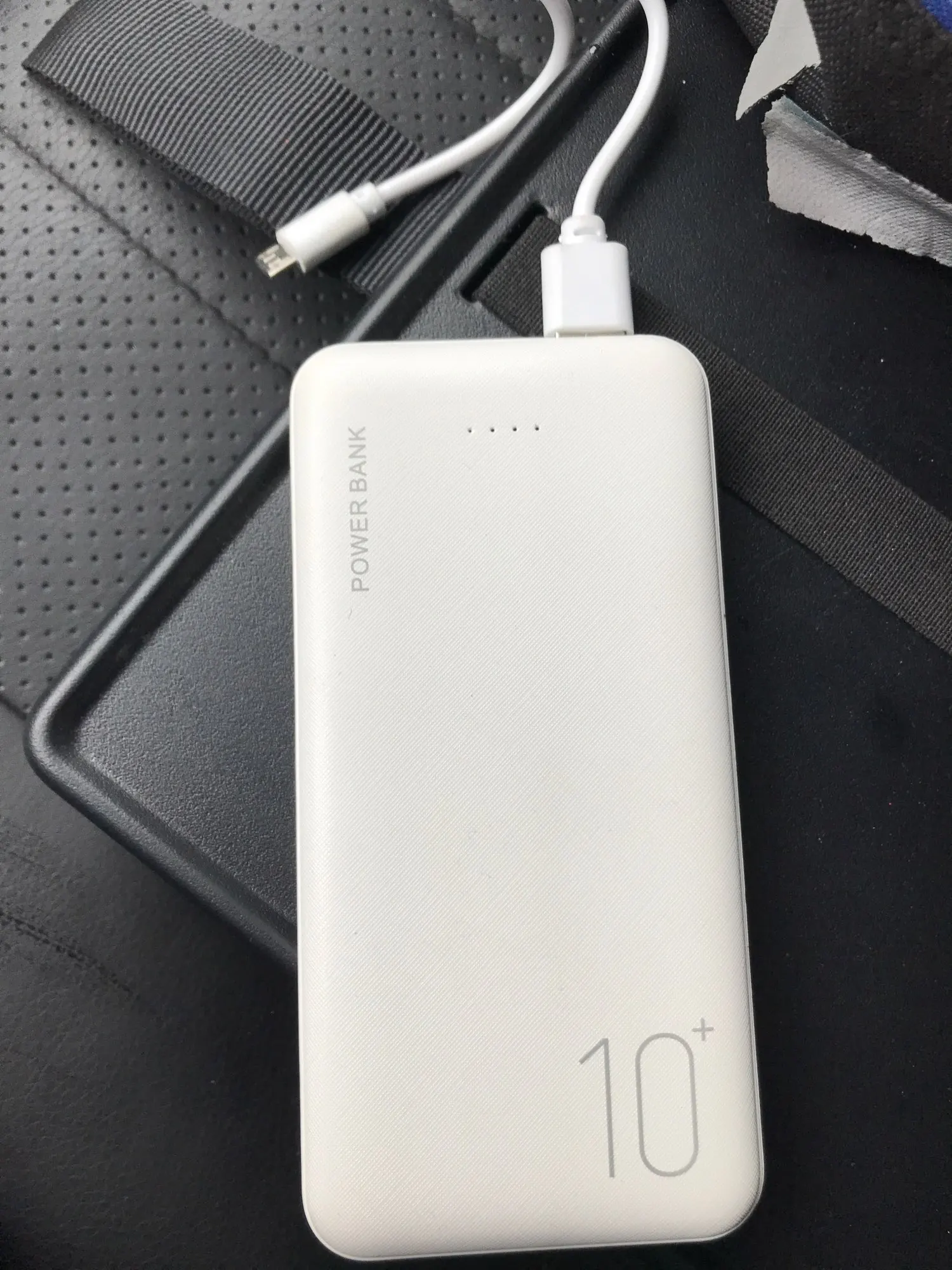 До Подольска заказ шёл примерно 20 дней. Заряжен был на половину. Кабель в комплекте. Вещь на вид стоящая, смотрится стильно. Все стяки идеальные и плотные, поверхность матовая без повреждений. Оптимальный вариант для экстренной подзарядки в дороге, не громоздкий. Прикольный