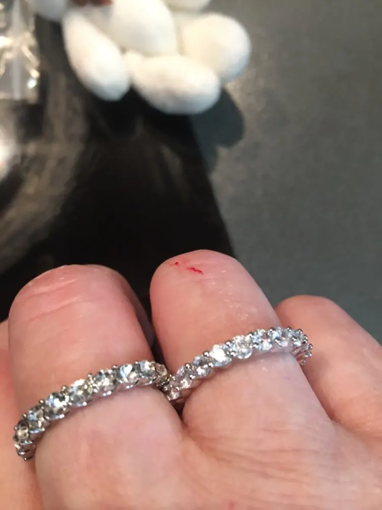 Бомбическое кольцо, советую! В отзывах писали, что царапает соседние пальцы, ничего подобного, проносила весь день, дискомфорта не доставило !