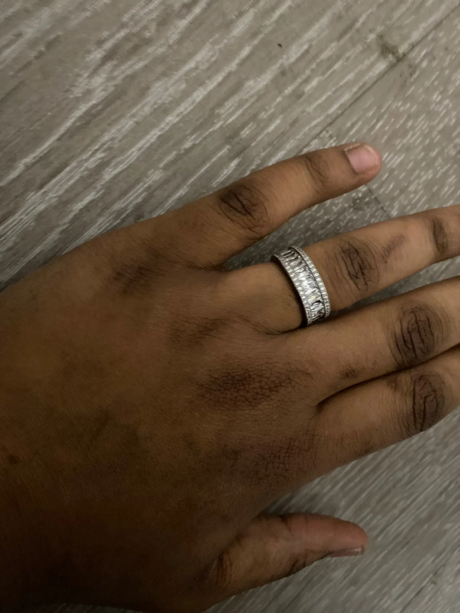 В соответствии с фотографией продавца, там Кольцо сияет хорошо! Я выбрал размер 6 и Размер подходит для моего большого пальца, моего указателя и моего среднего пальца. Это то, что я хотел, так что Топ! (у меня тонкие пальцы, если вы хотите закрыть вас)