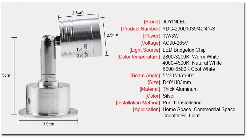 2 шт. белый/черный/серебристый светодиодный мини-светильник для шкафа, точечный светильник 3 Вт для потолочного навесного светильника, AC85-265V встроенный драйвер Параметры: