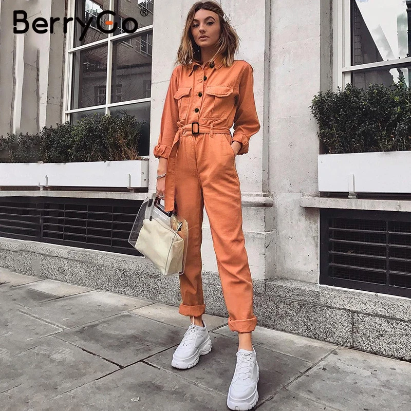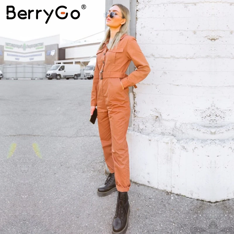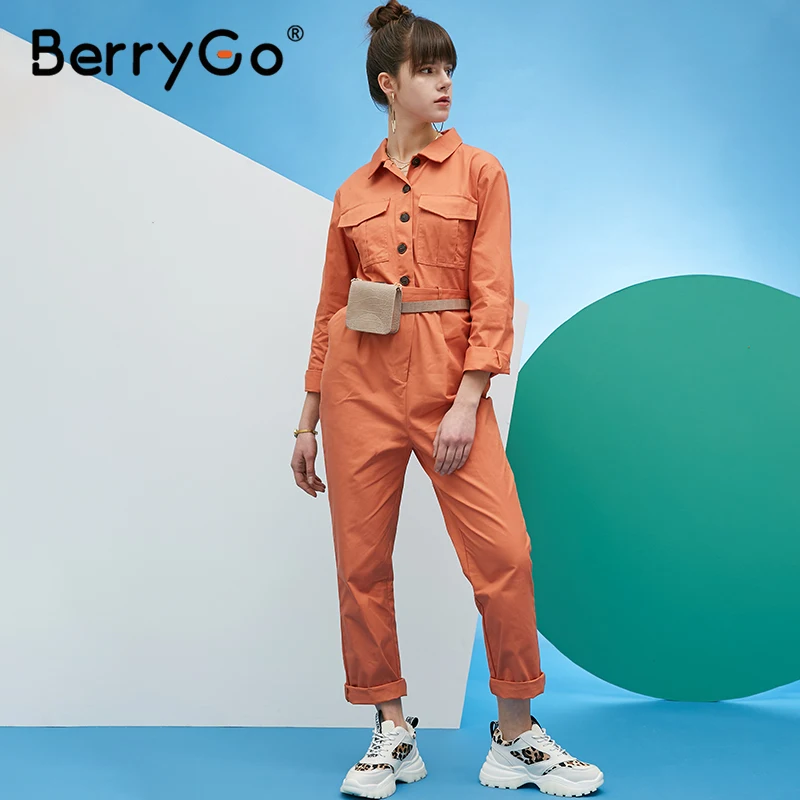 BerryGo женскoе комбинезон оранжевый карманный Повседневный грузовой хлопковый женский комбинезон оранжевый карманный спортивный комбинезон осень зима женский ползунки