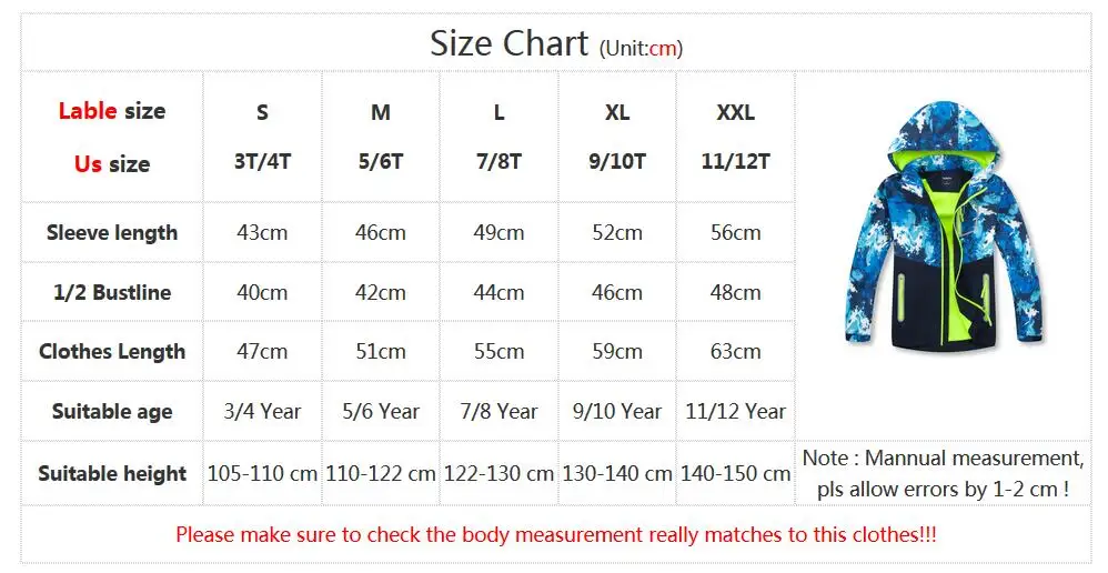 Пожалуйста, убедитесь, что измерения тела действительно соответствуют этой одежде!