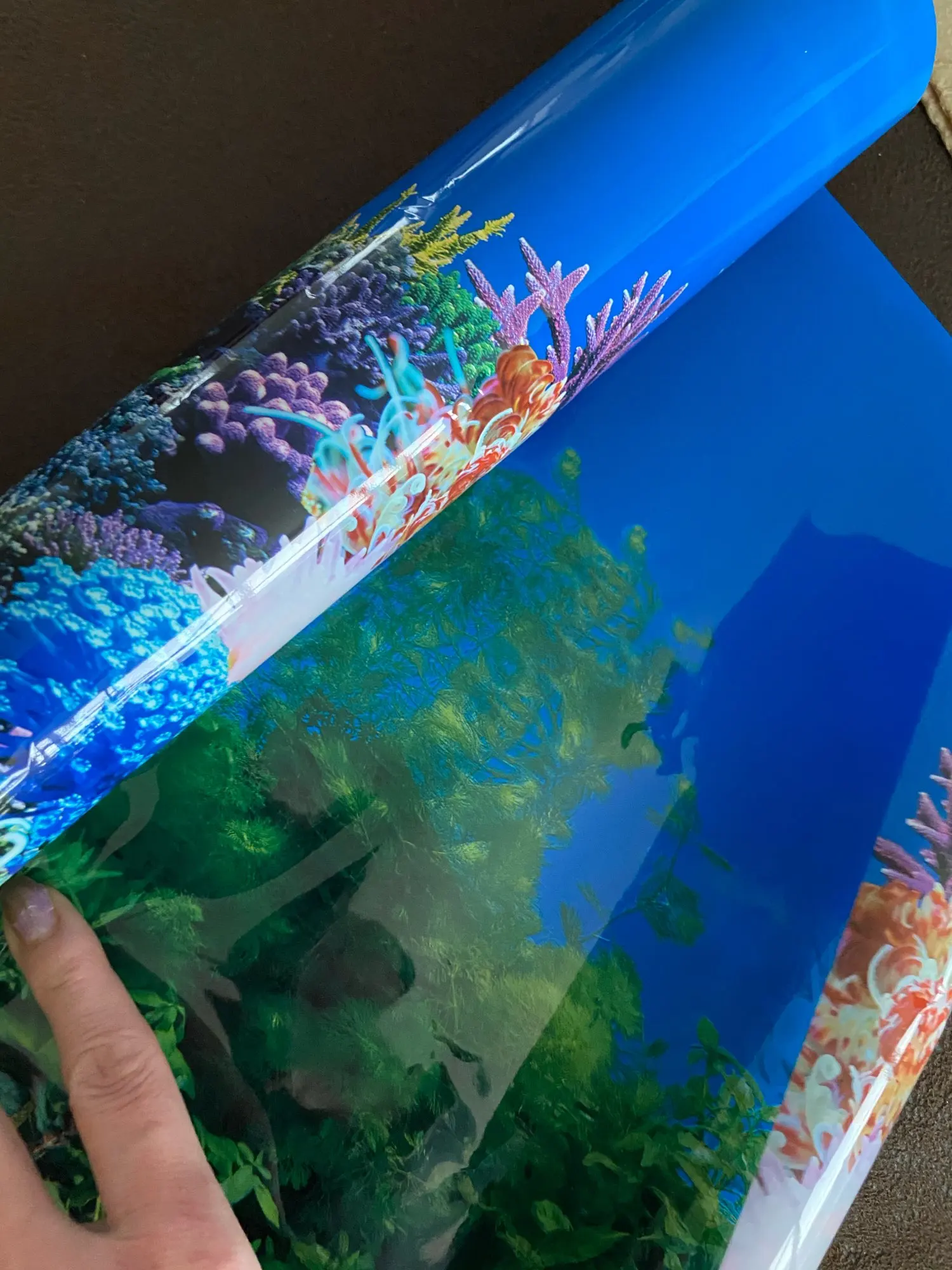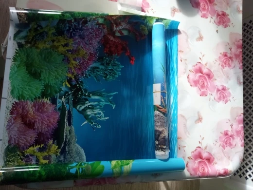 Хороший, яркий фон. С ним в аквариуме стало веселее) Продавец запаковал его отлично, намотав на круглый кусок вспененного полиэтилена. Даже наша почта не смогла его испортить)