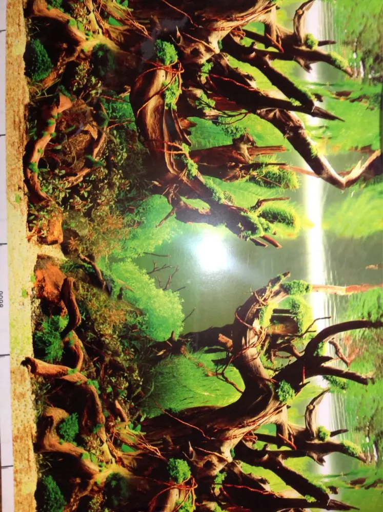 вещь специфичная. мне не удалось реализовать красоту дизайна. зависит от многих факторов: с какой стороны подсветка, какой дизайн уже в аквариуме (растеня , рыбы). ни о каком 3D эффекте речи и быть не может. лично мне больше нравится просто черный фон.