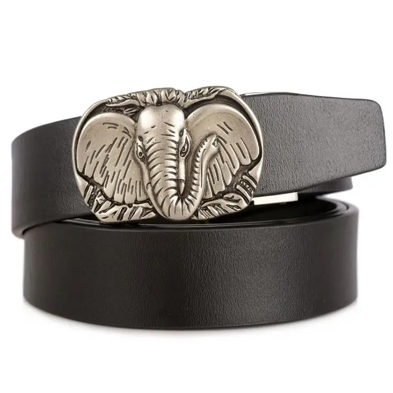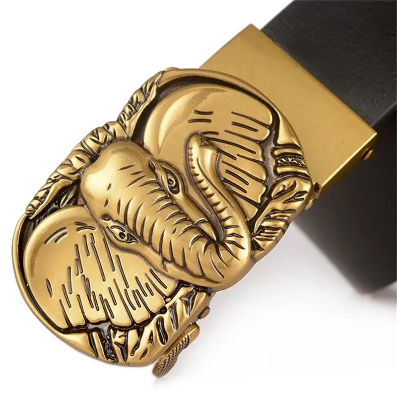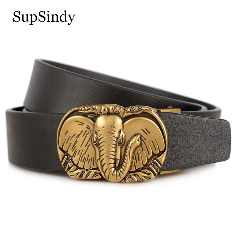 Ремень SupSindy мужской с металлической автоматической пряжкой, черный пояс из натуральной воловьей кожи в стиле панк, с изображением слона
