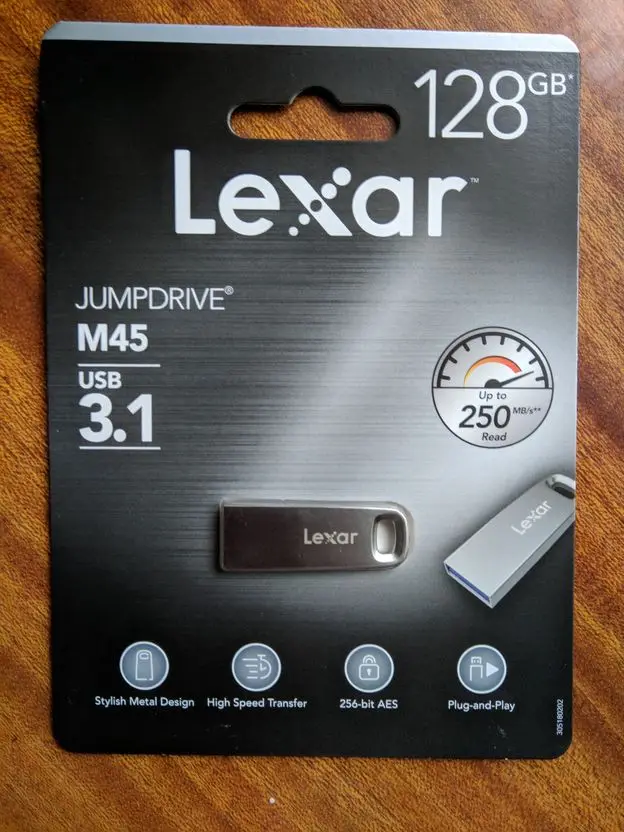 Это, по всей видимости, настоящий Jumpdrive Lexar M45. Очень впечатляющая скорость последовательной индикации! Достаточная скорость "последовательной записи". Выше средних скоростей чтения/записи. Я протестировал 64 Гб Jumpdrive, который поставляется в отформатированном виде с FAT32, оставляя 57,6 ГБ бесплатно. Весь привод используется одним разделом. FAT32 отлично подходит, если вам нужна максимальная совместимость с операционными системами, но максимальный размер файла составляет 4 ГБ. Таким образом, я немедленно отформатировал exFAT и повторно скопировал файлы Lexar DataSafe (Windows и Mac) обратно на диск. Нет ничего, чтобы установить с DataSafe, так что вы просто запускать файл и введите пароль по вашему выбору, чтобы создать/открыть скрытую папку на накопителе. Приложение затем становится менеджером файлов, который шифрует все, что вы сохраняете, в скрытую папку с помощью шифрования AES256. Я приятно удивлен и буду покупать больше этих «m45' дисков в будущем. Хороший продавец с быстрой доставкой, но доставка в США занимает 35 дней в разгар пандемии.