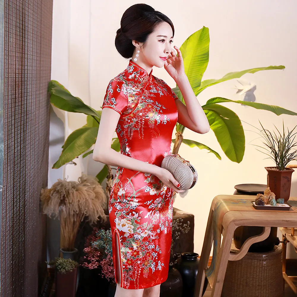 Женское атласное платье Ципао, элегантное традиционное китайское платье большого размера с принтом, для свадебных торжеств и свадеб, размеры 3XL-6XL