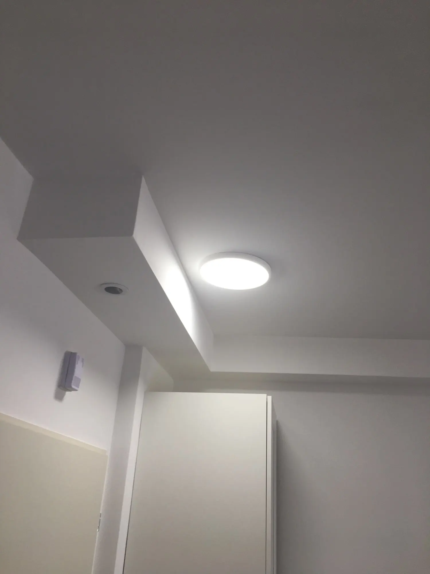 Светит очень ярко, на стену или на уровне глаз я бы вешать не стал. Пластик не очень качественный, видны небольшие дефекты с торца, но это не критично если висит не перед глазами.