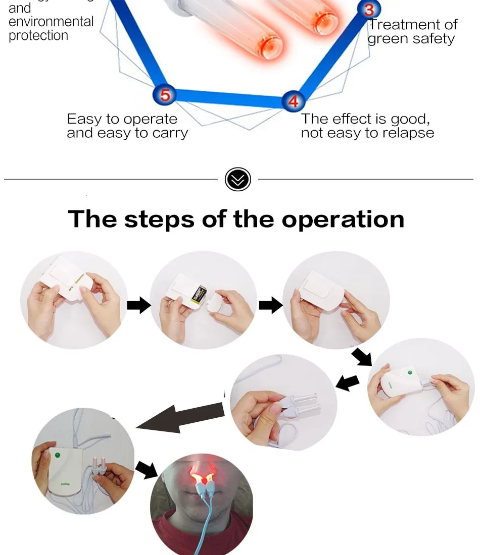 Лазерный рихайнит терапевтический аппарат основан на современной медицине и клинической практике исследований и разработки полупроводникового лазерного терапевтического инструмента, прибор принимает полупроводниковый светильник с длиной волны 660 нм, 8-12 мВт низкая видимая интенсивность лазера, лечение облучения в носовой полости, активация физиологии крови