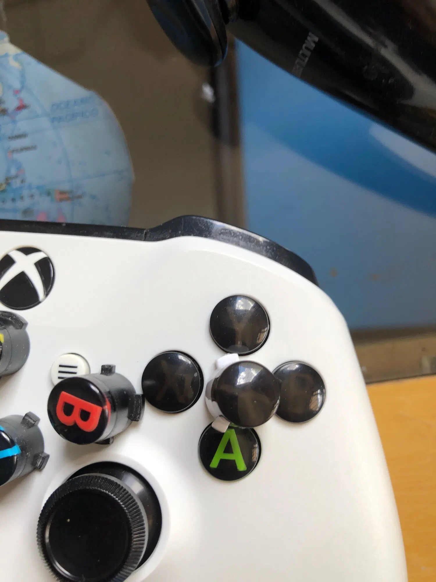 Элементы как показано, но размер разумный диаметр кнопок меньше, чем оригинальные кнопки (это не заметно, пока кнопки не будут на собранном Контроллере) эта разница в диаметре делает кнопку немного перемещаться