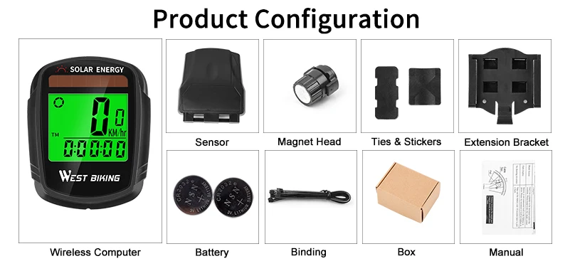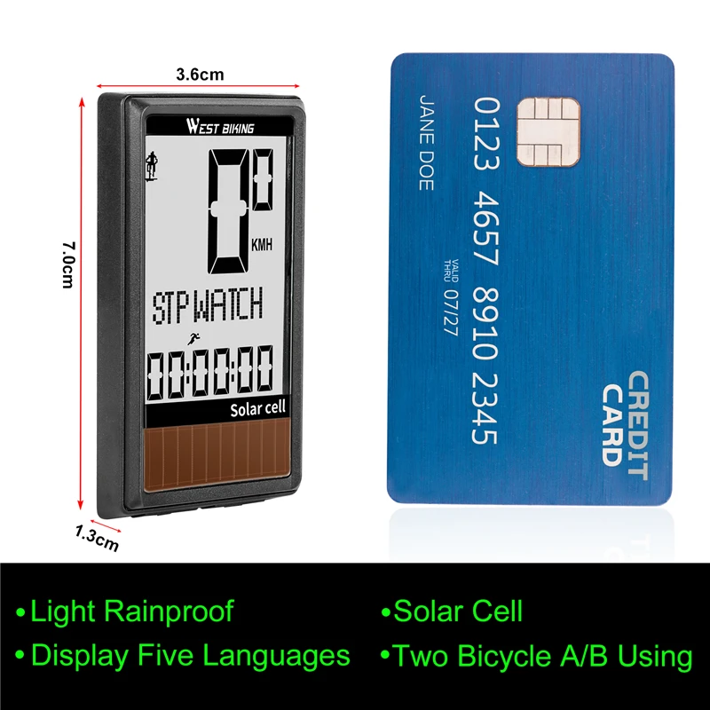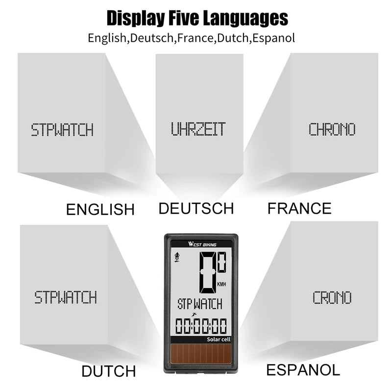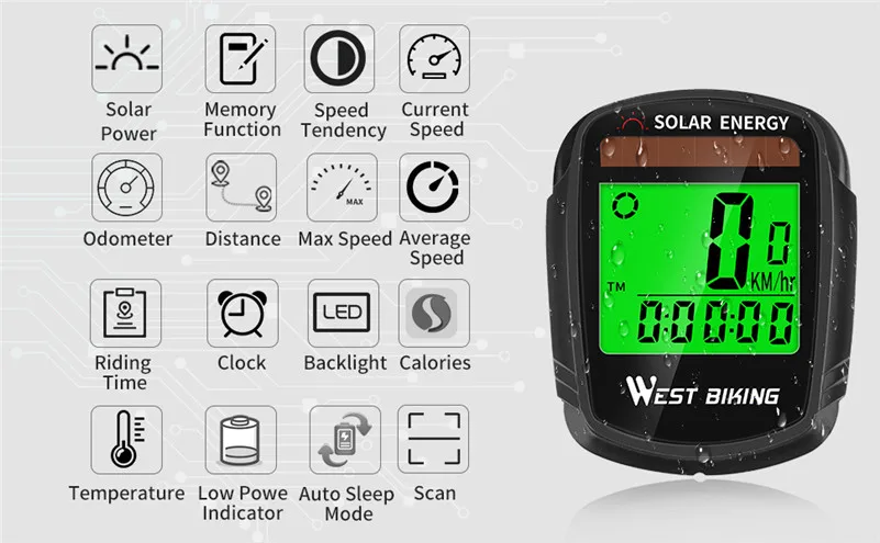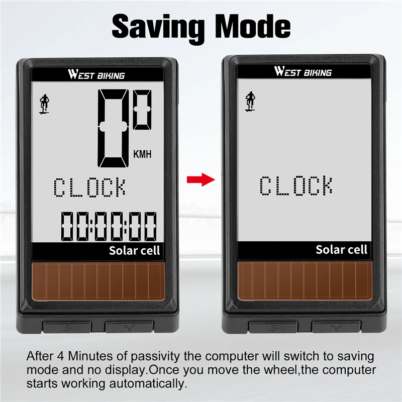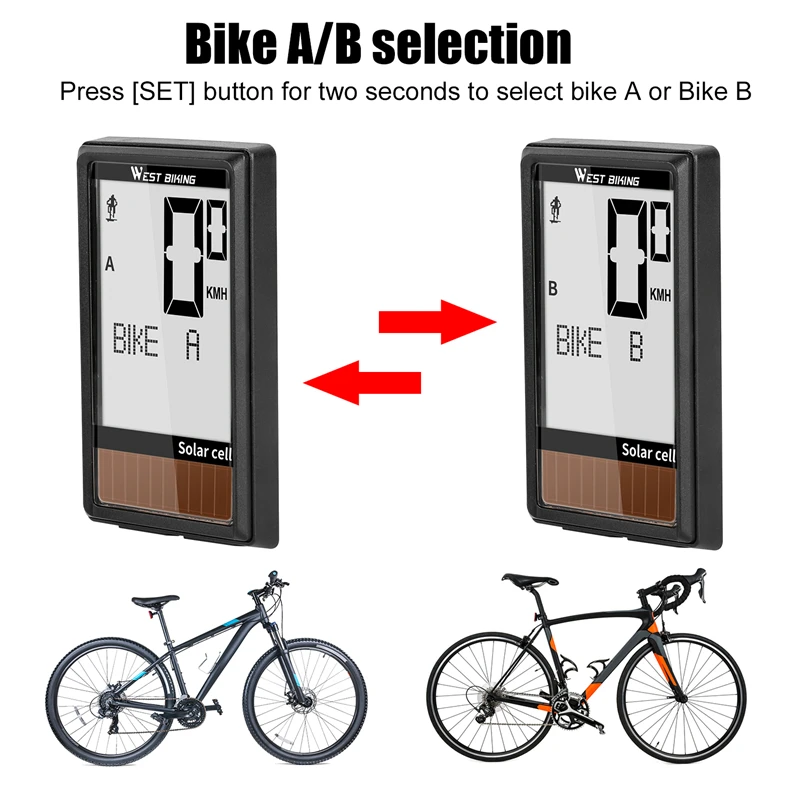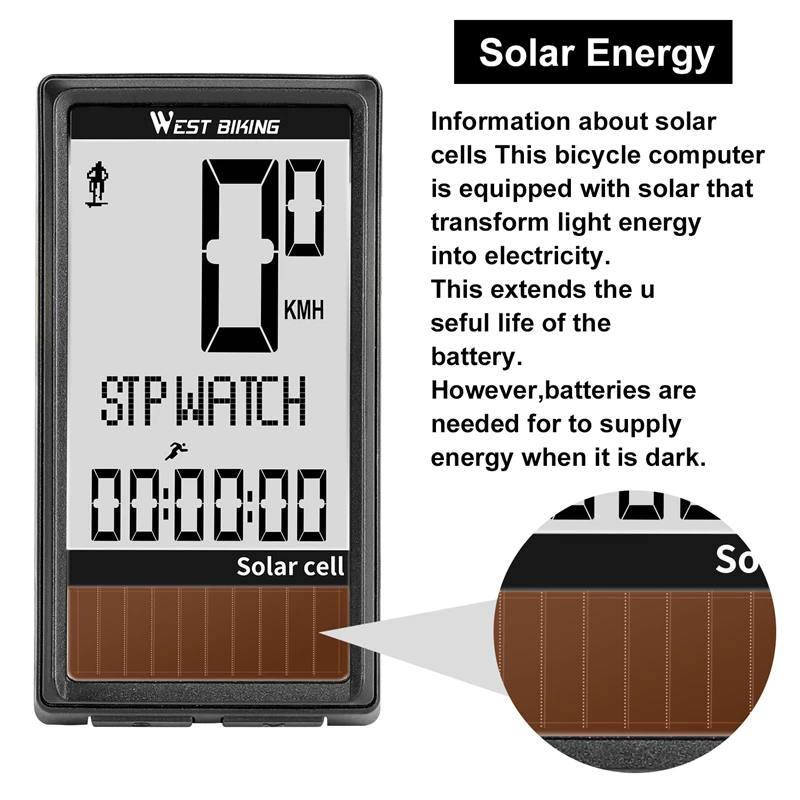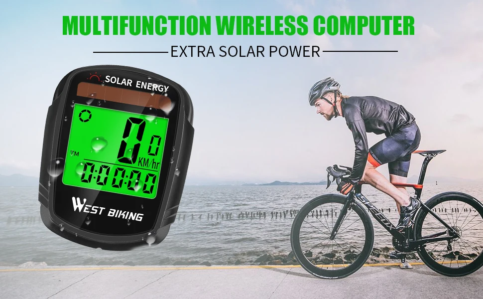 Велосипедный компьютер на солнечной батарее WEST BIKING, беспроводной водонепроницаемый Спидометр для велосипеда одометр, автоматическое Пробуждение