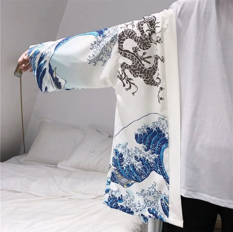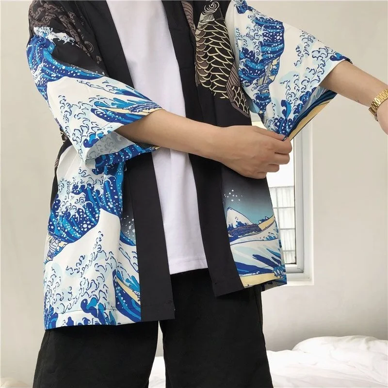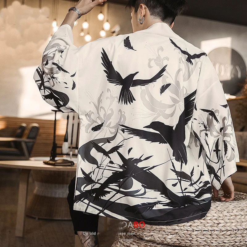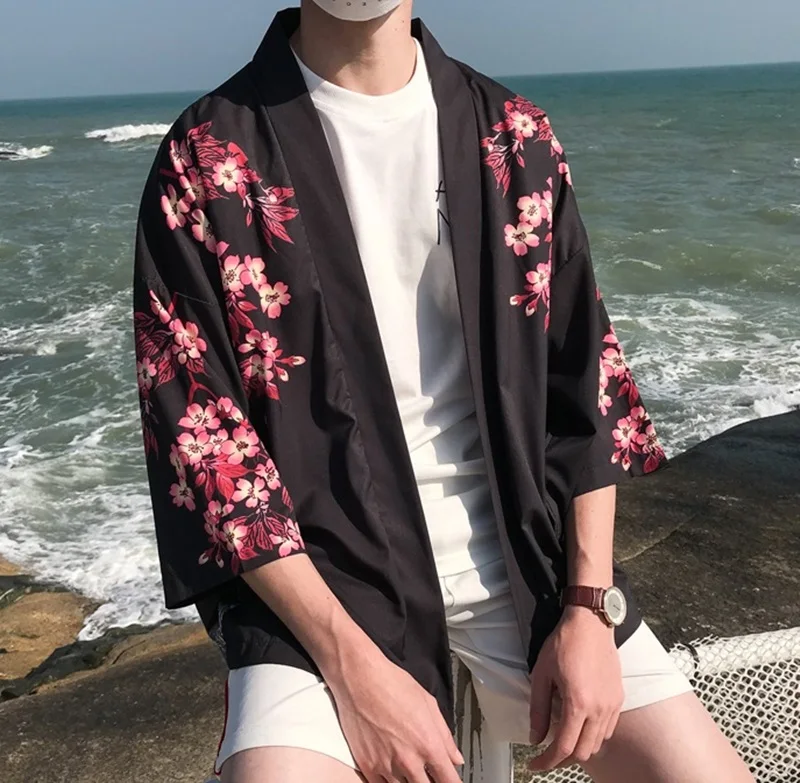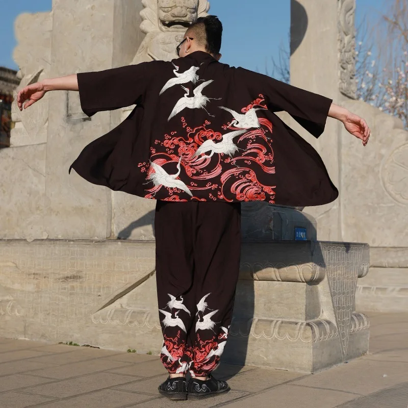 Кимоно, мужское, японское кимоно, кардиган, юката, мужское кимоно, куртка, Японская уличная одежда в стиле Харадзюку, самурайская одежда, юката, хаори, Оби
