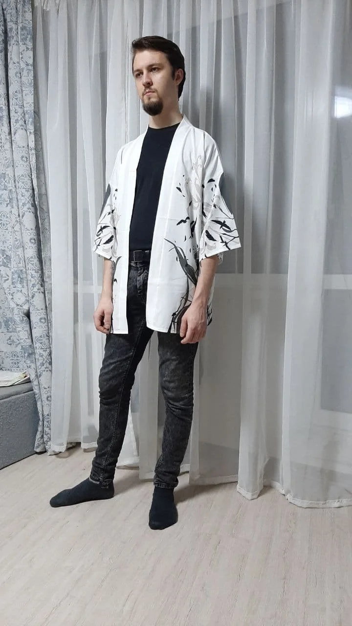 Я заказал два кимоно, и они прибыли в Германию всего за две недели. Они были красиво упакованы и сложены. Я так доволен качеством принта, он безупречный и четкий даже с близкого расстояния. Ткань легкая и воздушная, как шифон. Отлично подойдет для лета.