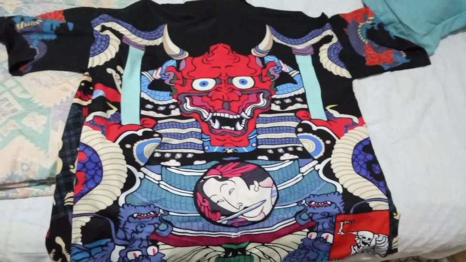 Кимоно классное, пришло быстро. Сделанно довольно качественно. Материал очень тонкий. Носить можно только летом скорей всего. Принт классный. Чем дольше смотрю, тем больше нового на принте рисунков вижу. Товаром доволен. Ток не понял зачем его заказал