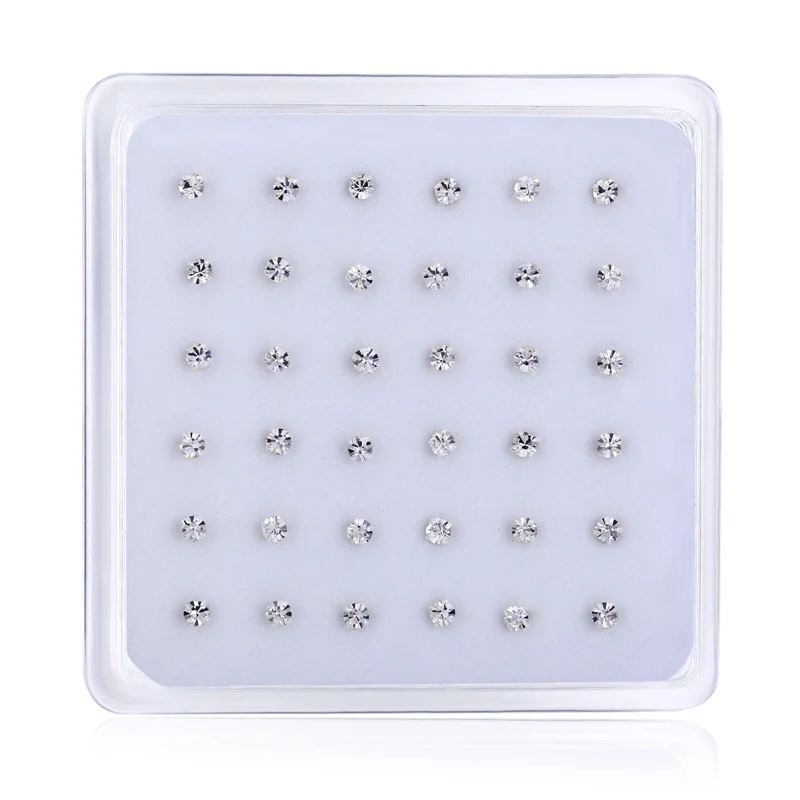 36 шт. реальные 925 пробы серебряные кольца и штифты для носа 1,5/2/2.5/3 мм прозрачный кристалл золотой пирсинг ювелирные изделия слуховая косточка ногтей оптовая продажа 2020