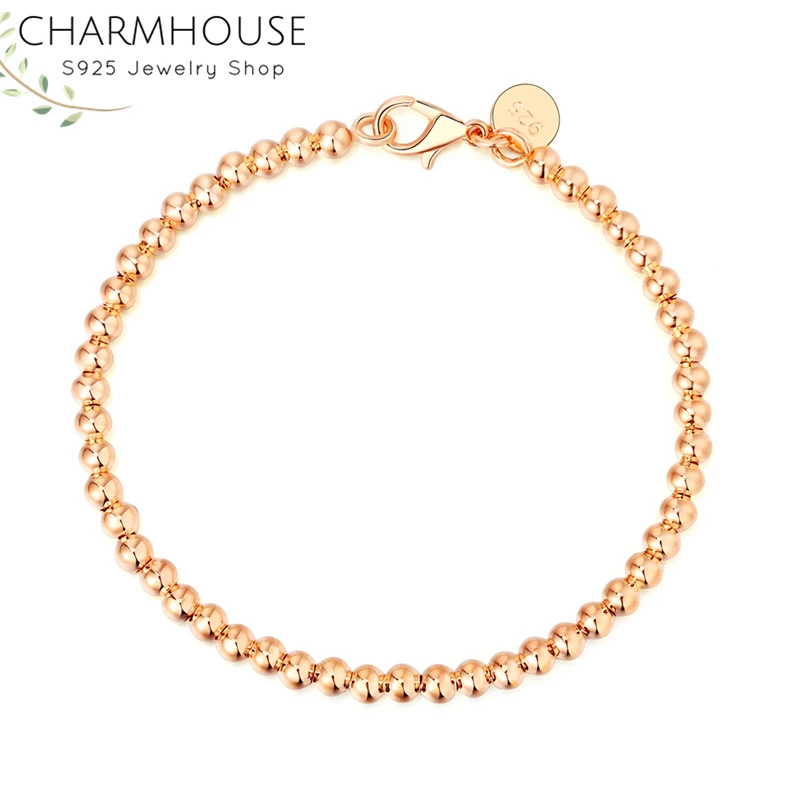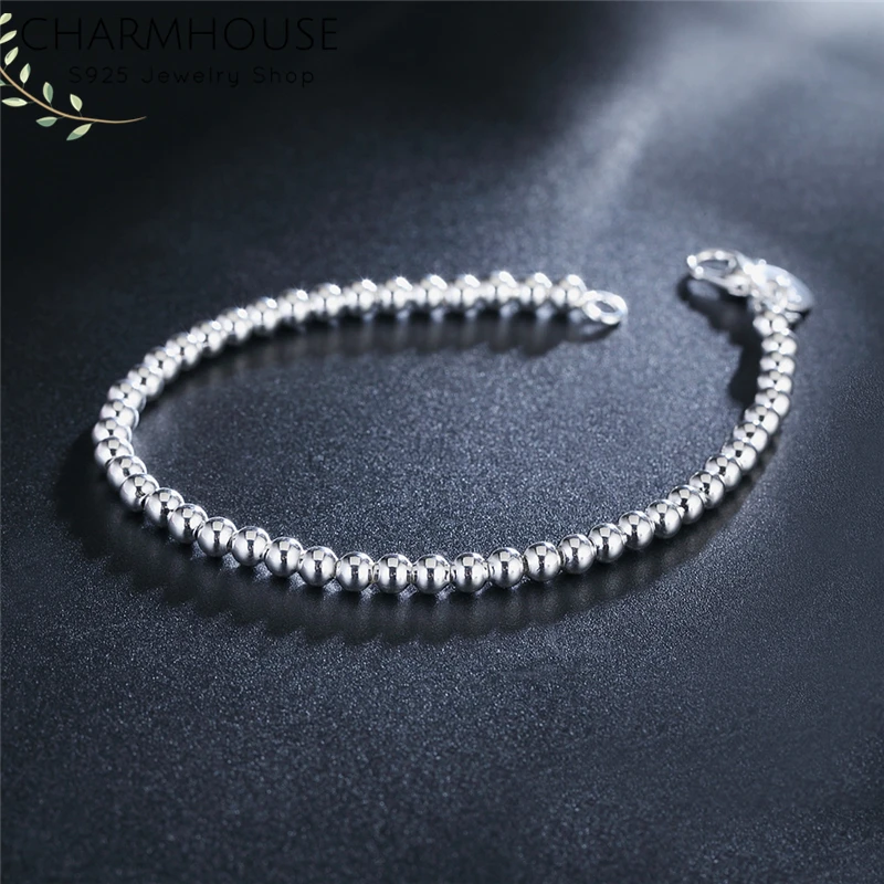 Charmhouse чистое серебро 925 ювелирные изделия 4 мм бусины браслет-цепочка для женщин браслеты браслет женский браслет свадебные подарки