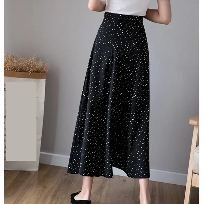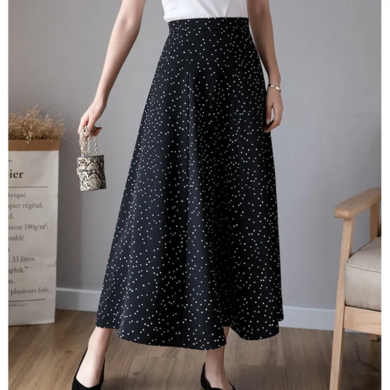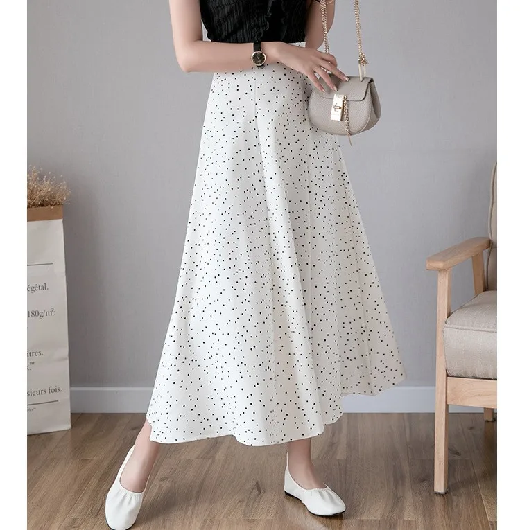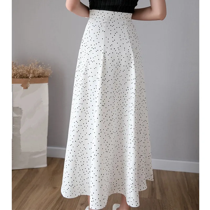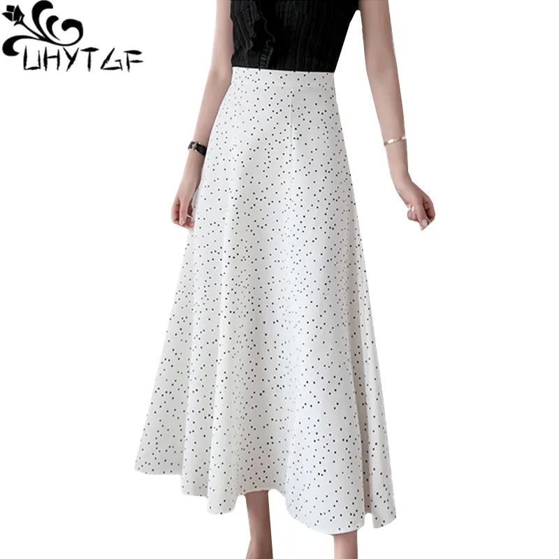 Женская шифоновая юбка UHYTGF, винтажная длинная юбка с высокой талией и принтом, белая, черная, для лета, 124