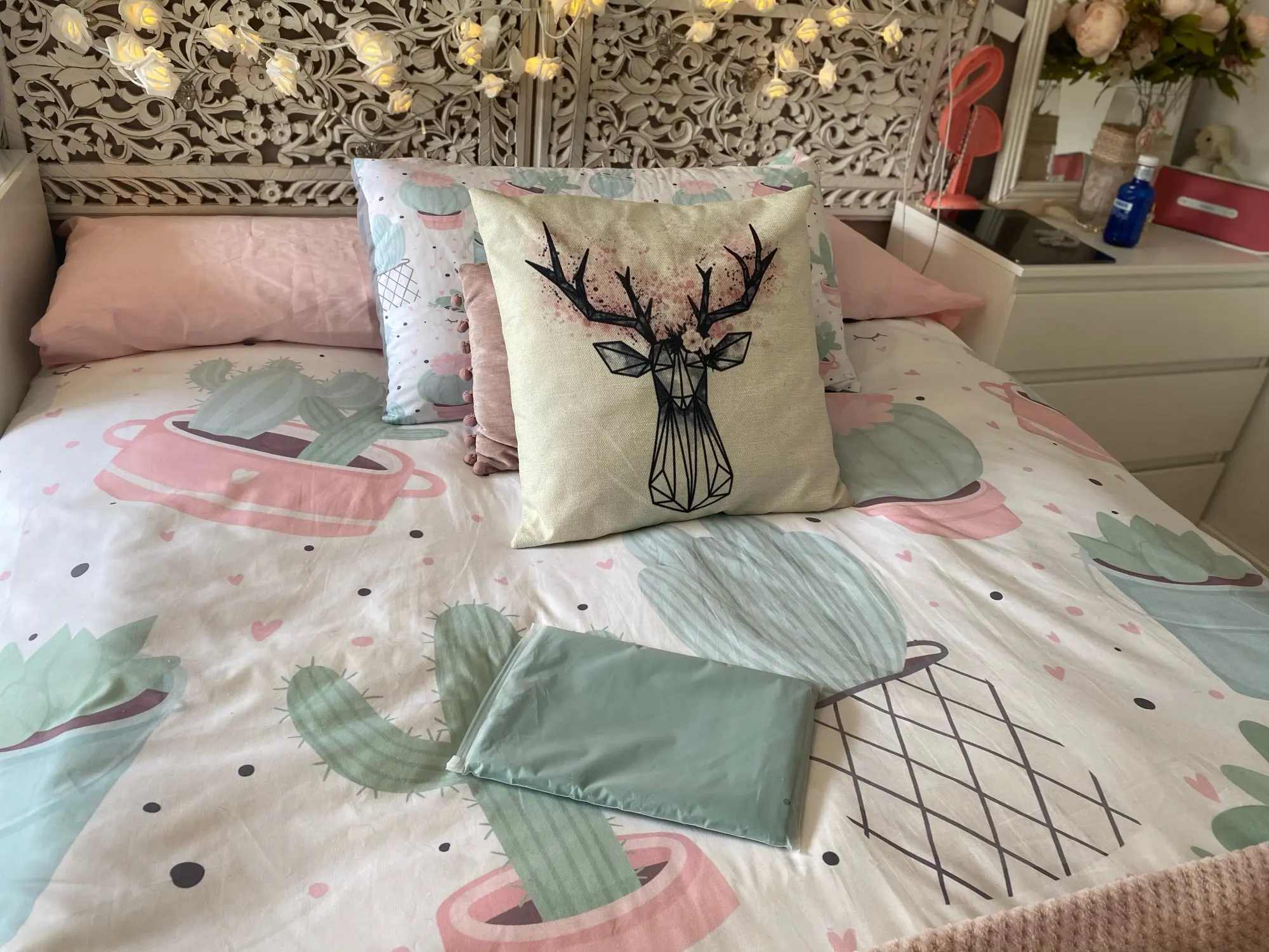 Она красивая, но сильно сжимает подушку. Я не знаю, расслабится ли это на данный момент, но в остальном он берет Размер чуть выше, я думаю.