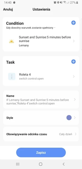 Все правильно и работает, как показано в описании веб-сайта. Эта модель SC411WSC-EU с приложением Smart Life позволяет программировать затвор вверх или вниз, а также определить продолжительность (за считанные секунды), что операция будет длиться. Что позволяет мне лазить или опускать слепой до половины, например. И так лучше управлять светом и нагревом, который входит в мою комнату. Чтобы сделать это программирование, как показано на первом изображении, он будет нажат на колесо конфигурации, а затем второй образ будет выбран там, где длительность программирования настроена на «расписание», В этом случае я установила 15 секунд. Версия прошивки, установленная этой моделью SC411WSC-EU в настоящее время, 1.1.3